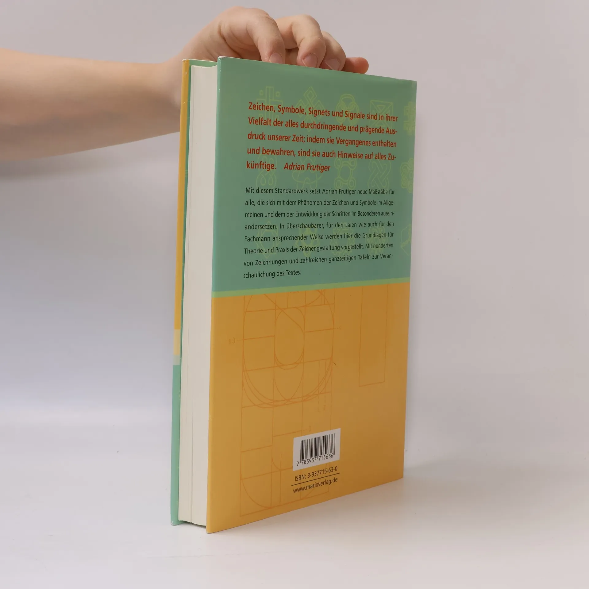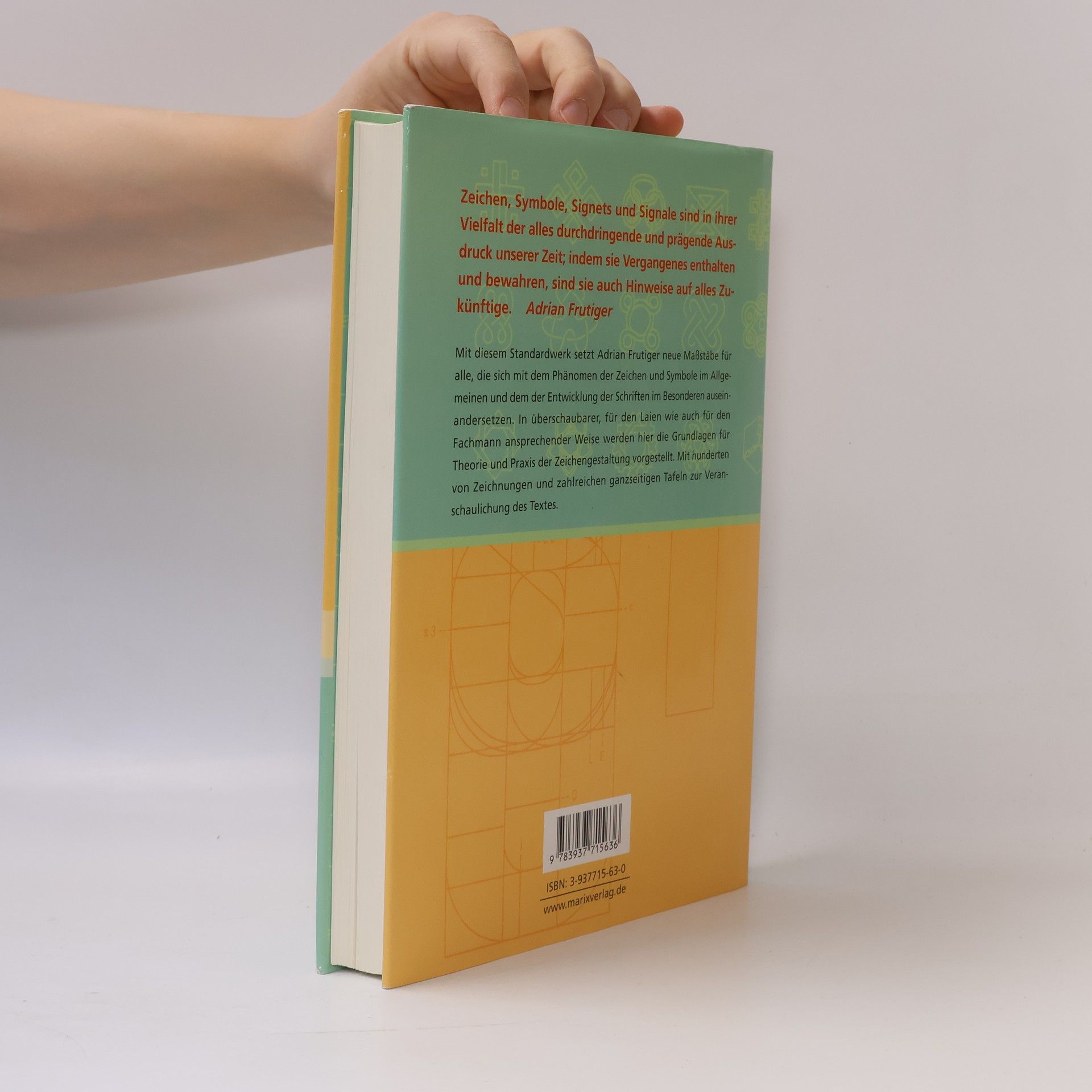 „Zeichen, Symbole, Signets und Signale sind in ihrer Vielfalt der alles durchdringende und prägende Ausdruck unserer Zeit; indem sie Vergangenes enthalten und bewahren, sind sie auch Hinweise auf alles Zukünftige“. Mit diesem Staandardwerk setzt Adrian Frutiger neue Maßstäbe für alle, die sich mit dem Phänomen der Zeichen und Symbole im Allgemeinen und dem der Entwicklung der Schriften im Besonderen auseinandersetzen. In überschaubarer, für den Laien wie auch für den Fachmann ansprechender Weise werden hier die Grundlagen für Theorie und Praxis der Zeichengestaltung vorgestellt. Mit hunderten von Zeichnungen und zahlreichen ganzseitigen Tafeln zur Veranschaulichung des Textes.