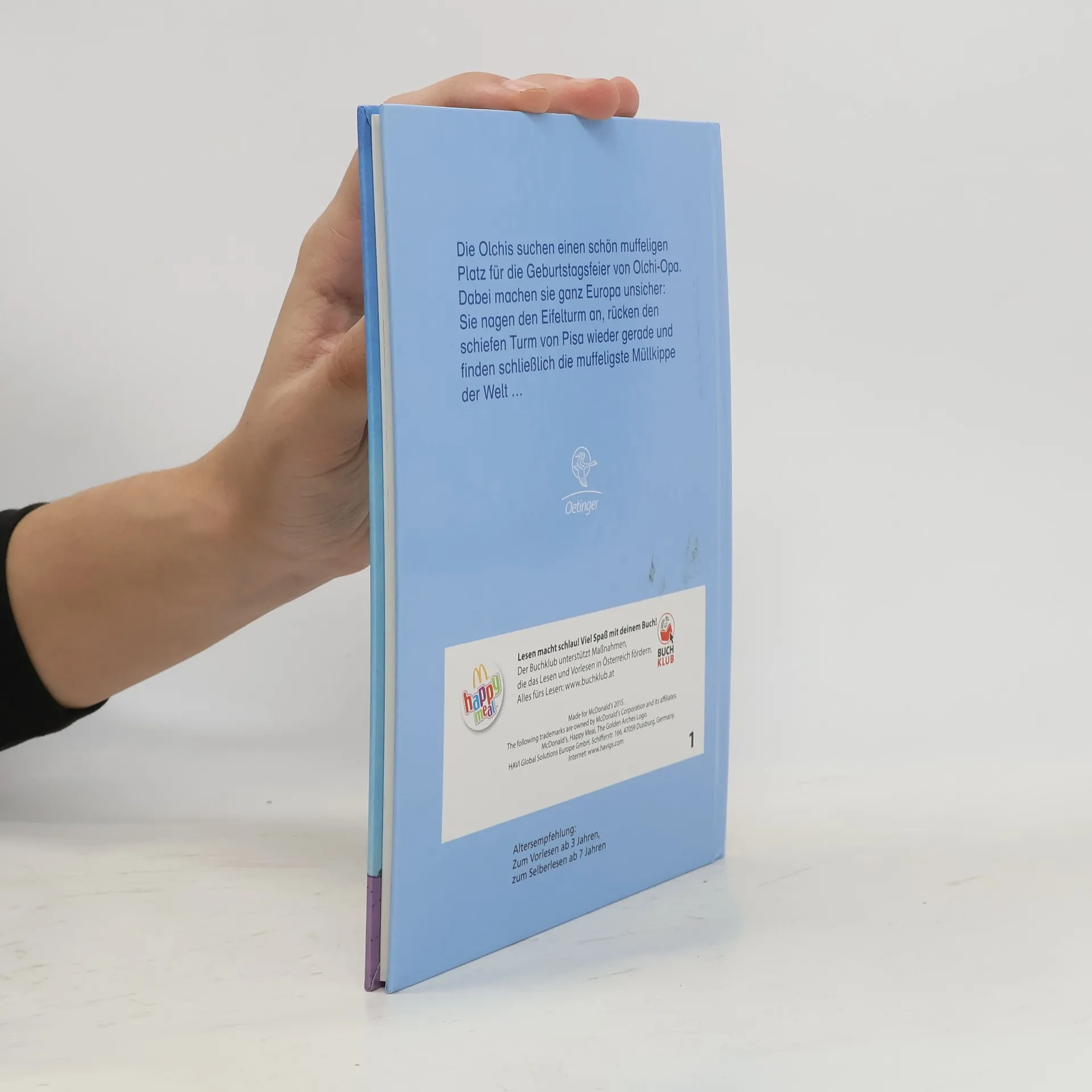 Was für eine Geburtstagsreise! Auf dem Rücken von Feuerstuhl, ihrem Drachen, machen die Olchis Europa unsicher. Sie suchen einen schönen, muffeligen Platz für die Geburtstagsfeier von Olchi-Opa. Dabei landen sie in einem schottischen Schloss, nagen den Eiffelturm in Paris an und rücken den Schiefen Turm von Pisa wieder gerade.