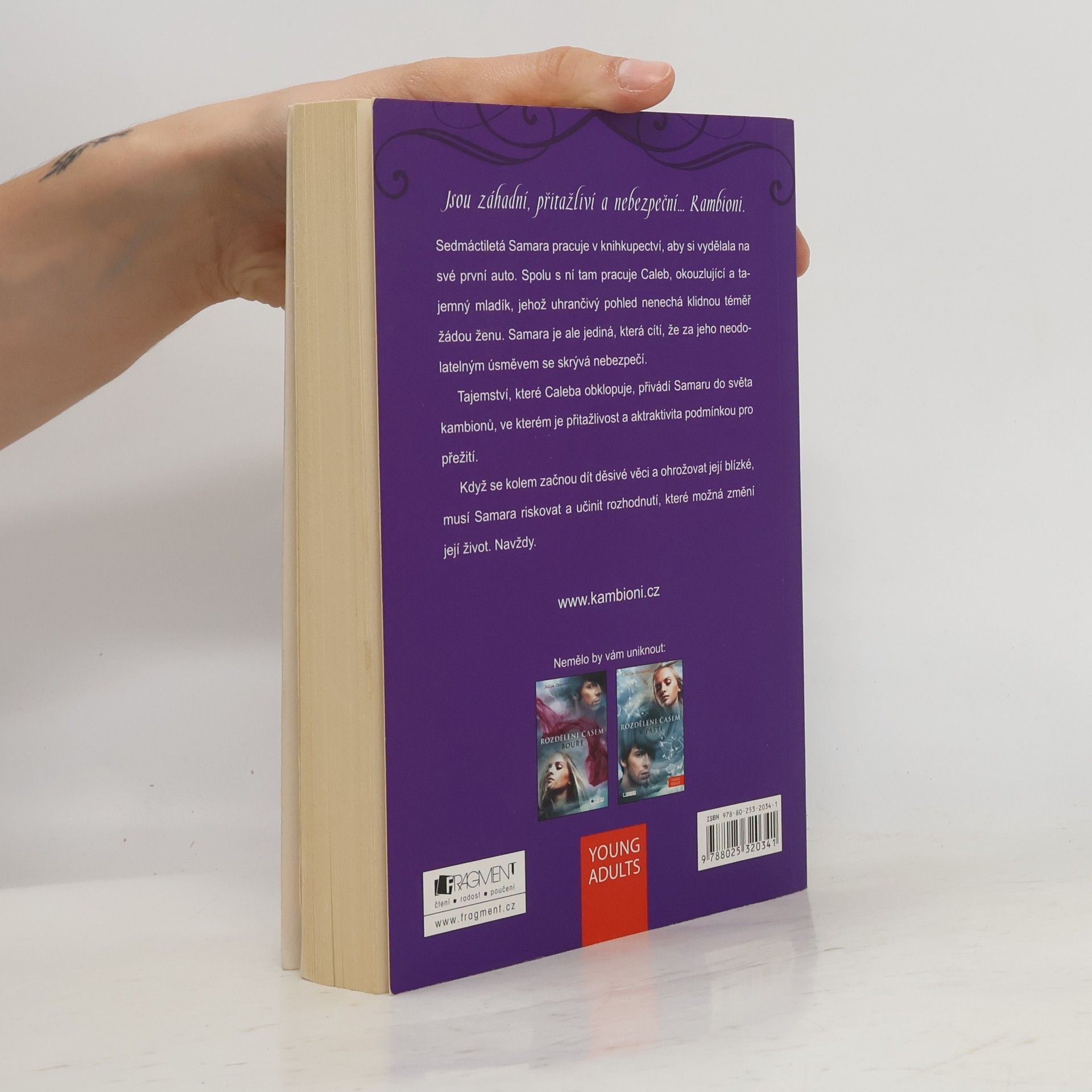 Jsou záhadní, přitažliví a nebezpeční... Kambioni. Sedmnáctiletá Samara pracuje v knihkupectví, aby si vydělala na své první auto. Spolu s ní tam pracuje Caleb, okouzlující a tajemný mladík, jehož uhrančivý pohled nenechá klidnou téměř žádnou ženu. Samara je ale jediná, která cítí, že za jeho neodolatelným úsměvem se skrývá nebezpečí. Tajemství, které Caleba obklopuje, přivádí Samaru do světa kambionů, ve kterém je přitažlivost a atraktivita podmínkou pro přežití. Když se kolem začnou dít děsivé věci a ohrožovat její blízké, musí Samara riskovat a učinit rozhodnutí, které možná změní její život. Navždy.