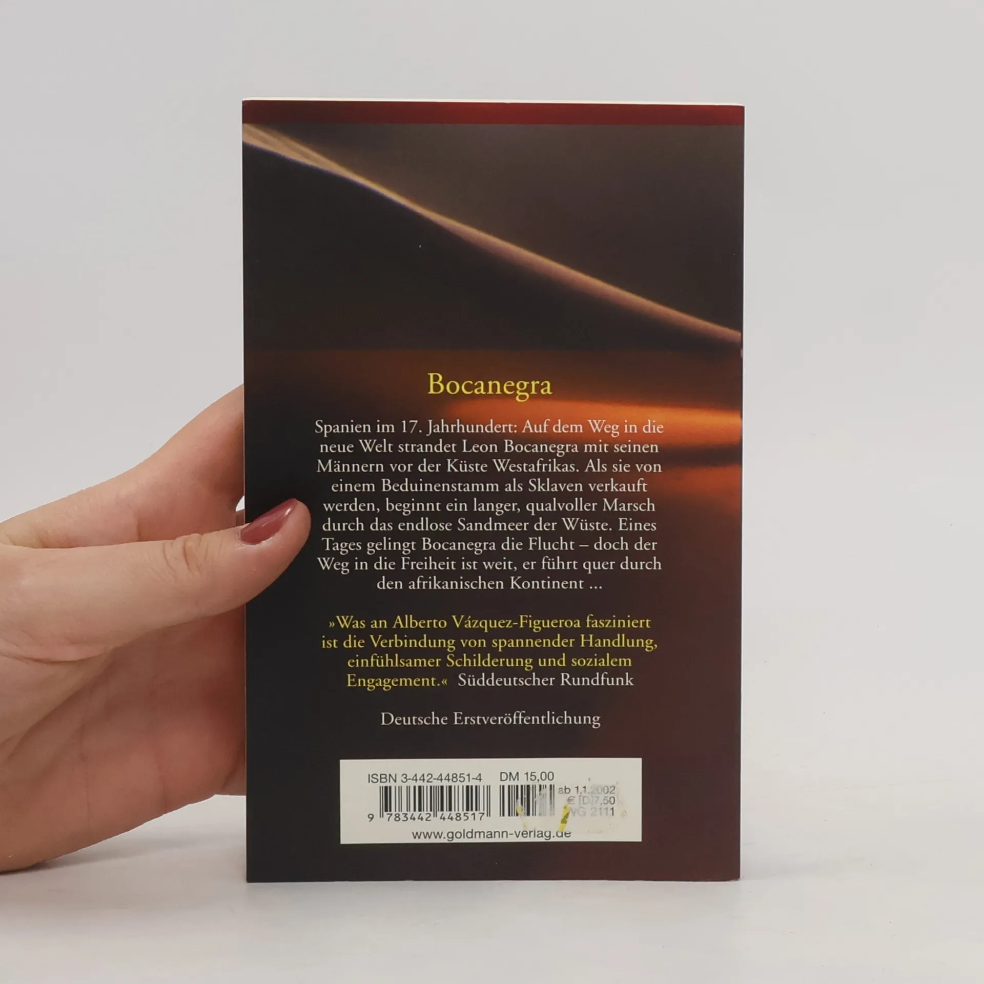 Der neue Afrikaroman vom Autor des Weltbestsellers „Tuareg“. Ein packender Abenteuerroman aus dem Herzen Afrikas: Spanien, 17. Jahrhundert. Auf dem Weg in die Neue Welt strandet Leon Bocanegra mit seinen Männern vor der Küste Westafrikas. Von einem Beduinenstamm als Sklaven verkauft, beginnt ein langer, qualvoller Marsch durch das endlose Sandmeer der Wüste. Eines Tages gelingt Bocanegra die Flucht - doch der Weg in die Freiheit ist weit, er führt quer durch den afrikanischen Kontinent.