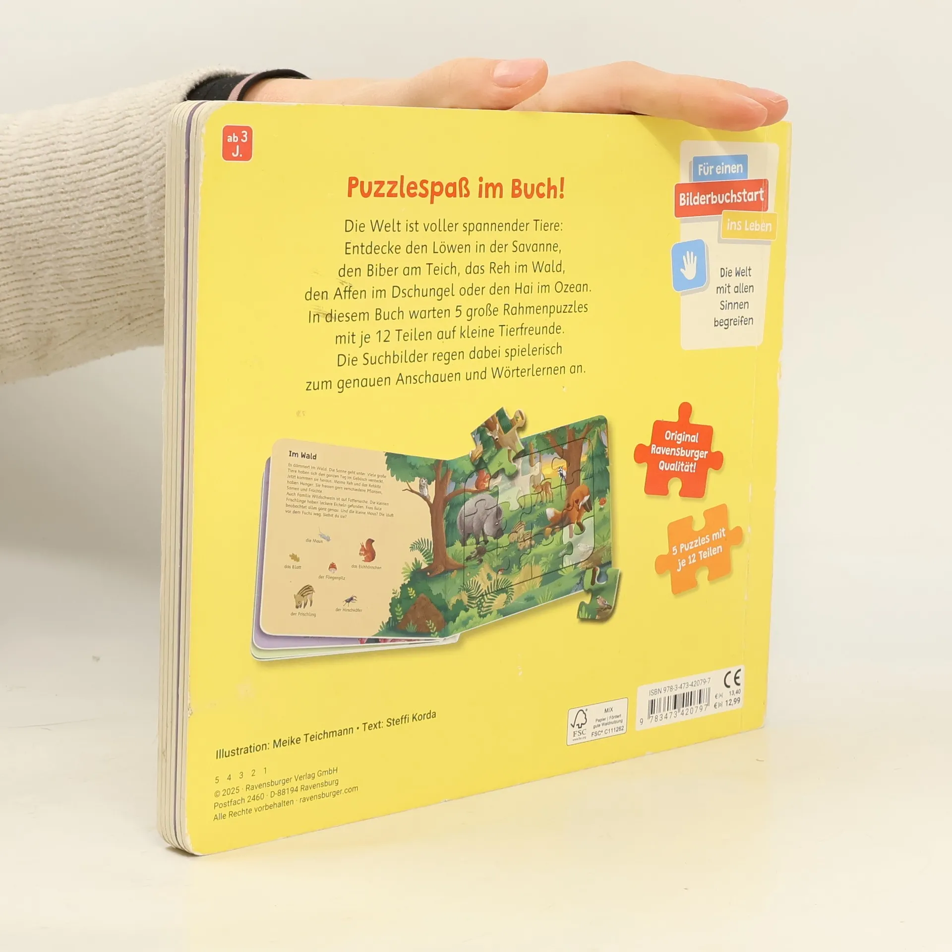 Ravensburger Puzzle-Buch: Tiere der Welt - Kinderbuch ab 3 Jahren, Puzzle mit 12 Teilen, Spielbuch, Wimmelbuch, Pappbilderbuch, Steffi Korda