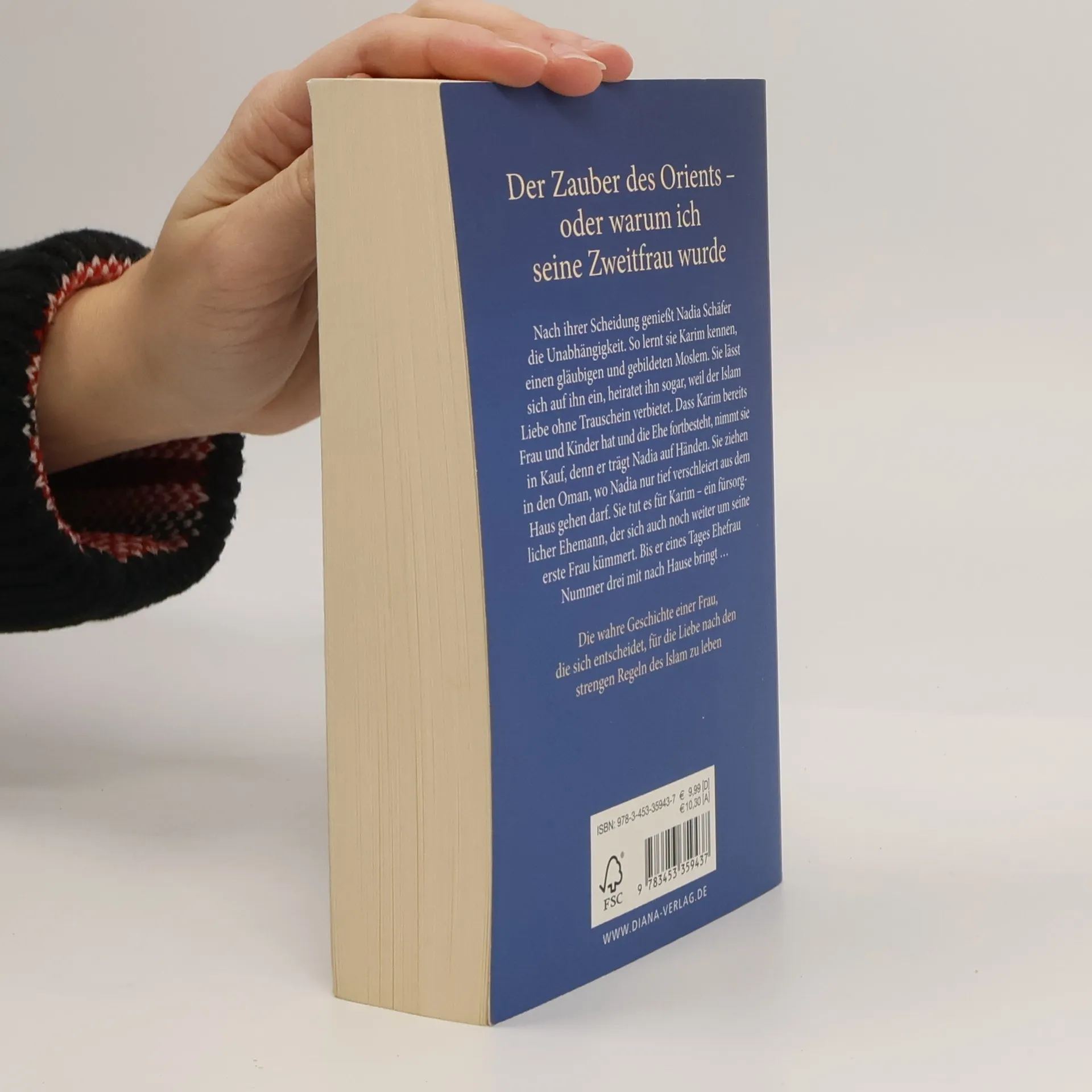 Nach ihrer Scheidung genießt Nadia Schäfer die Unabhängigkeit. So lernt sie Karim kennen, einen gläubigen und gebildeten Moslem. Sie lässt sich auf ihn ein, heiratet ihn sogar, weil der Islam Liebe ohne Trauschein verbietet. Dass Karim bereits Frau und Kinder hat und die Ehe fortbesteht, nimmt sie in Kauf, denn er trägt Nadia auf Händen. Sie ziehen in den Oman, wo Nadia nur tief verschleiert aus dem Haus gehen darf. Sie tut es für Karim – ein fürsorglicher Ehemann, der sich auch noch um seine erste Frau kümmert. Bis er eines Tages Ehefrau Nummer drei mit nach Hause bringt …