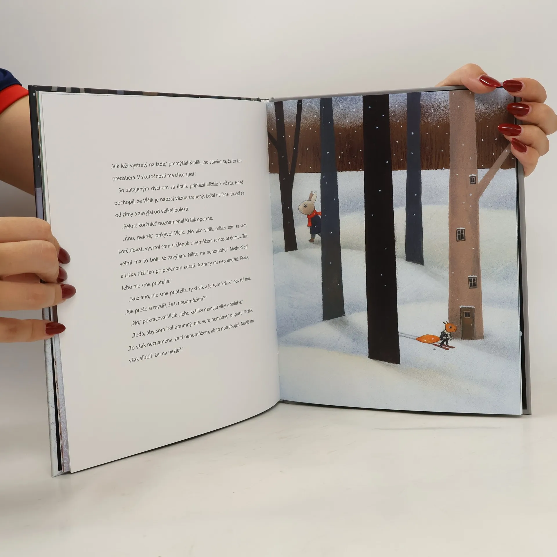 Krásna zimná rozprávka, ktorá naučí deti rozpoznať skutočných priateľov.Do lesa prišli Vianoce. Stromy a kríky prikryl sneh, zvieratká sa odobrali na zimný spánok.Väčšina lesných obyvateľov dostala vianočné darčeky. Vĺčik si našiel pod stromčekom krásne nové korčule a hneď sa vybral na zamrznuté jazero, aby ich vyskúšal. Pri korčuľovaní si však vyvrtol členok. Poprosil o pomoc svojich kamarátov Medveďa a Líšku, no tí mu nepomohli. Príslovie hovorí, že v núdzi poznáš priateľa. Až keď sa Vĺčikovi prihodí nehoda, zistí, kto sú jeho skutoční priatelia. A že sú to práve lesní obyvatelia, od ktorých by pomoc nikdy nečakal.Nádherná oceňovaná rozprávka prináša po dlhom čase na Slovensko pôvodnú ilustrovanú tvorbu pre deti z Estónska.This publication has been made possible with financial support from EESTI KULTUURKAPITAL.