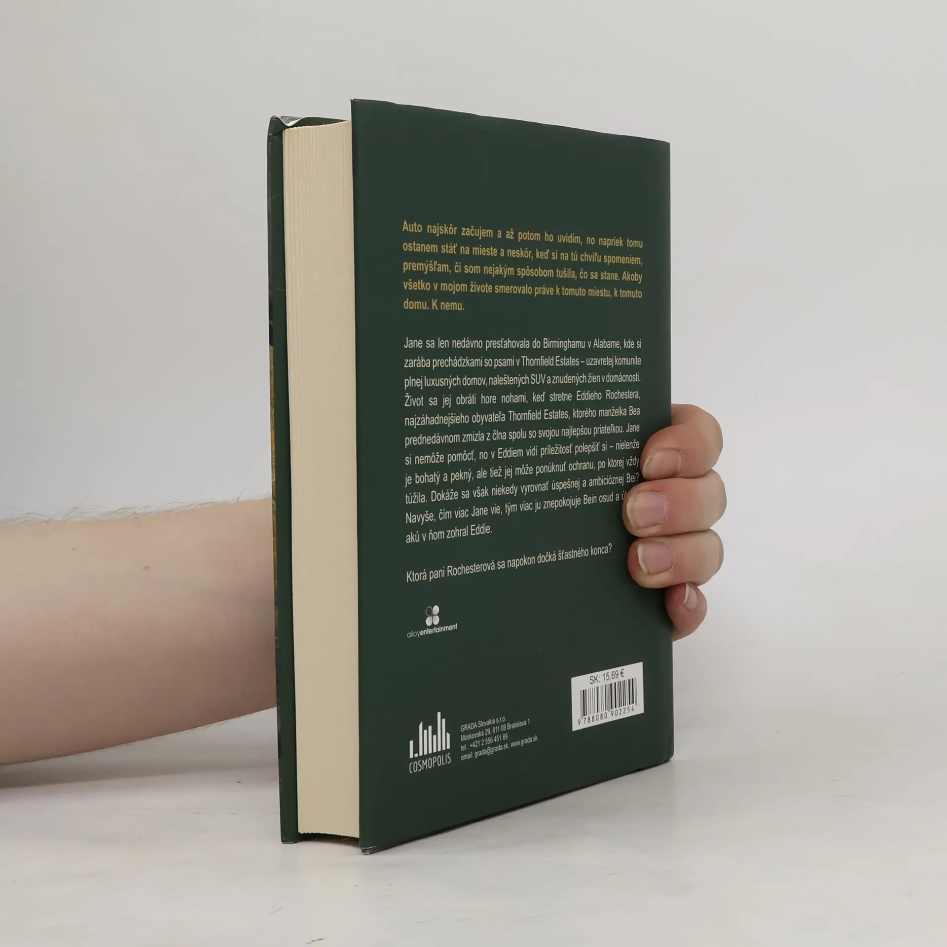 Auto najskôr začujem a až potom ho uvidím, no napriek tomu ostanem stáť na mieste a neskôr, keď si na tú chvíľu spomeniem, premýšľam, či som nejakým spôsobom tušila, čo sa stane. Akoby všetko v mojom živote smerovalo práve k tomuto miestu, k tomuto domu. K nemu. Jane sa len nedávno presťahovala do Birminghamu v Alabame, kde si zarába prechádzkami so psami v Thornfield Estates – uzavretej komunite plnej luxusných domov, naleštených SUV a znudených žien v domácnosti. Život sa jej obráti hore nohami, keď stretne Eddieho Rochestera, najzáhadnejšieho obyvateľa Thornfield Estates, ktorého manželka Bea prednedávnom zmizla z člna spolu so svojou najlepšou priateľkou. Jane si nemôže pomôcť, no v Eddiem vidí príležitosť polepšiť si – nielenže je bohatý a pekný, ale tiež jej môže ponúknuť ochranu, po ktorej vždy túžila. Dokáže sa však niekedy vyrovnať úspešnej a ambicióznej Bei? Navyše, čím viac Jane vie, tým viac ju znepokojuje Bein osud a úloha, akú v ňom zohral Eddie. Ktorá pani Rochesterová sa napokon dočká šťastného konca?