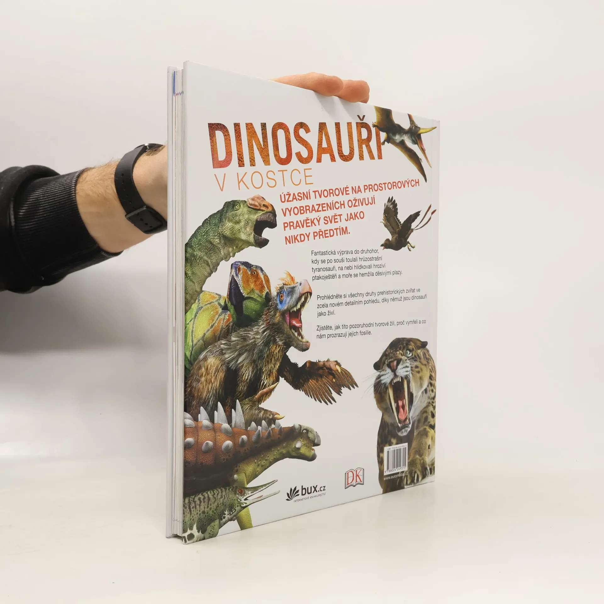Pozoruhodná encyklopedie dinosaurů zachycuje tato ohromující prehistorická zvířata na prostorových vyobrazeních, doprovázených přehledným informativním textem. V knize Dinosauři v kostce ožívají tyranosauři, ptakoještěři, velcí mořští plazi i celý prehistorický svět tak jako nikdy předtím.