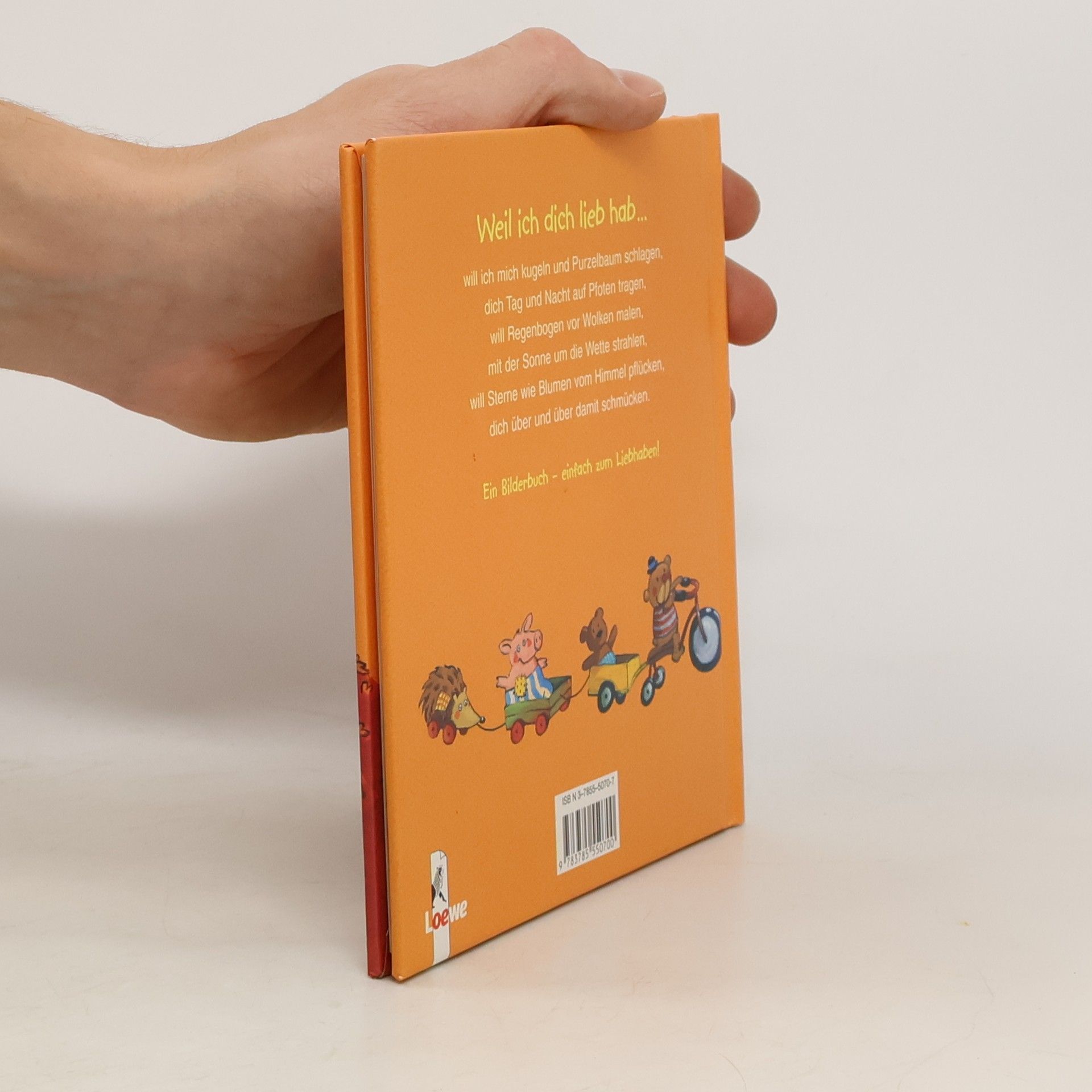 Weil ich dich lieb hab, will ich mich kugeln und Purzelbaum schlagen, dich Tag und Nacht auf Pfoten tragen, will Regenbogen vor Wolken malen, mit der Sonne um die Wette strahlen, will Sterne wie Blumen vom Himmel pflücken, dich über und über damit schmücken. Ein Bilderbuch - einfach zum Liebhaben!