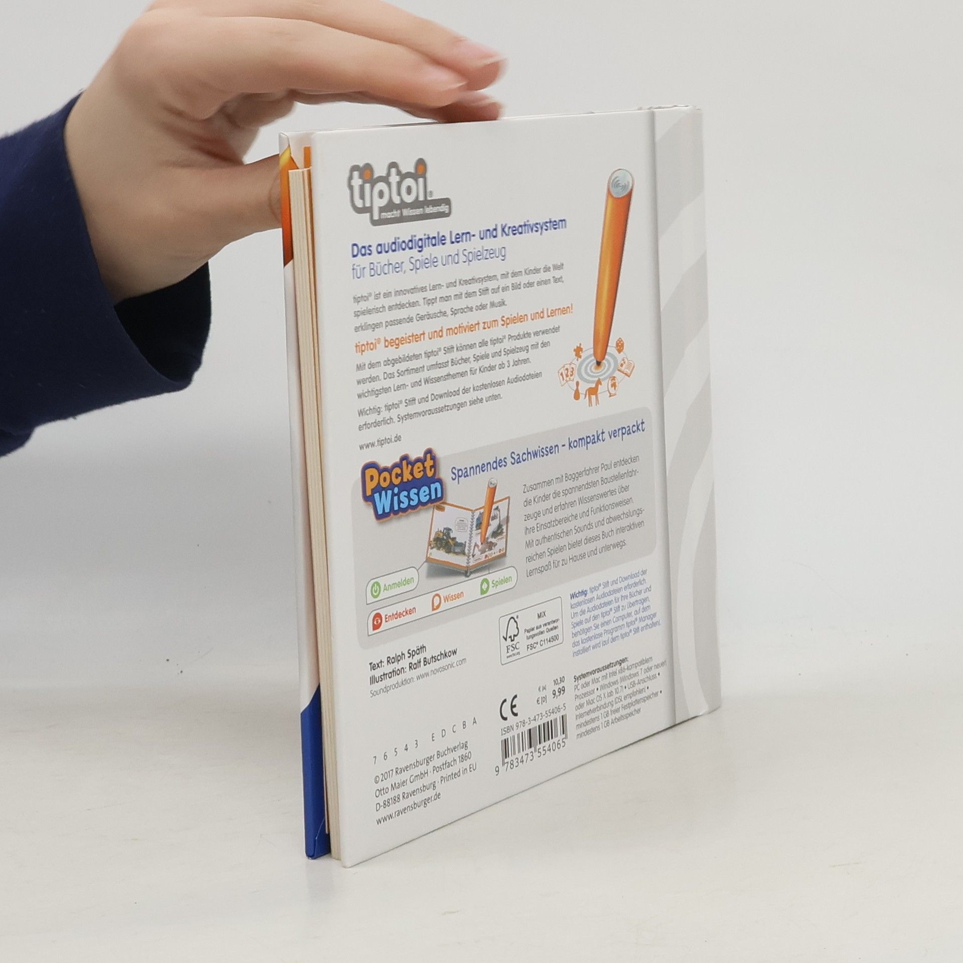 Kompaktes Sachwissen zum Mitnehmen rund um das Thema "Baustellenfahrzeuge" Ob Bagger, Kräne, Laster oder Walzen: Zusammen mit Bauarbeiter Paul entdecken Kinder die unterschiedlichen Fahrzeuge, die auf einer Baustelle im Einsatz sind. Was genau passiert im Betonmischer? Wie hoch ist ein Turmdrehkran? Und warum werden Schwertransporter manchmal von der Polizei begleitet? Diese und viele andere Fragen, die kleine Technikfans sich stellen, werden hier beantwortet. Detailgetreue Illustrationen, authentische Geräusche und Quizspiele lassen die Baustelle lebendig werden. Ob Pferde und Ponys, Dinosaurier, Ballett oder Feuerwehr, mit der Reihe tiptoi Pocket Wissen können Kinder von 4 - 7 Jahren all ihre Lieblingsthemen entdecken und sammeln. Jeder Band bietet kompaktes Sachwissen mit vielen interessanten Informationen, authentischen Geräuschen und kniffligen Spielen. Der tiptoi-Stift lässt die kindgerecht aufgearbeiteten Sachthemen lebendig werden. So können sich die Kinder spannende Wissensinhalte mit viel Spaß selbständig und interaktiv aneignen. Die abwechslungsreichen Spiele helfen dabei, das gelernte Wissen zu vertiefen. Dank des handlichen Formats ist tiptoi Pocket Wissen ideal für unterwegs, als Geschenk zum Kindergeburtstag oder zum Schmökern zu Hause. So wird Wissen einfach überall lebendig! tiptoi-Stift nicht enthalten. Muss separat erworben werden.