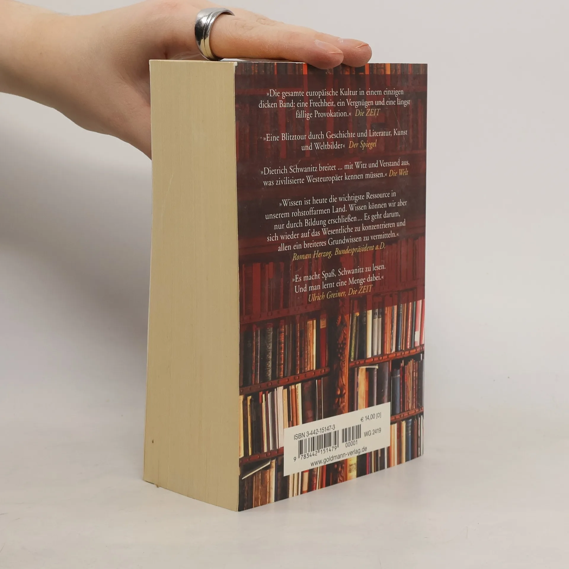 Unser Wissen ist im Umbruch, unser Bildungssystem in der Krise, der Ruf nach einem Kanon wird immer lauter. Dieses Handbuch bietet umfassende Neuorientierung hinsichtlich der Kernbestände unserer Kultur. Im ersten Teil „Wissen“ präsentiert Dietrich Schwanitz „alles, was man wissen muß“, um das „Bürgerrecht“ im Land der Bildung zu erwerben. Im zweiten Teil „Können“ geleitet Schwanitz den Leser unter anderem durch das „Haus der Sprache“, die Welt des Buches und der Schrift und bietet inspirierende Länderkunde. Eine Zeittafel, informative Kürzestfassungen von „Büchern, die die Welt verändert haben“, Tipps zum Weiterlesen und ein ausführliches Namenregister erhöhen den Gebrauchswert dieses Kompendiums.