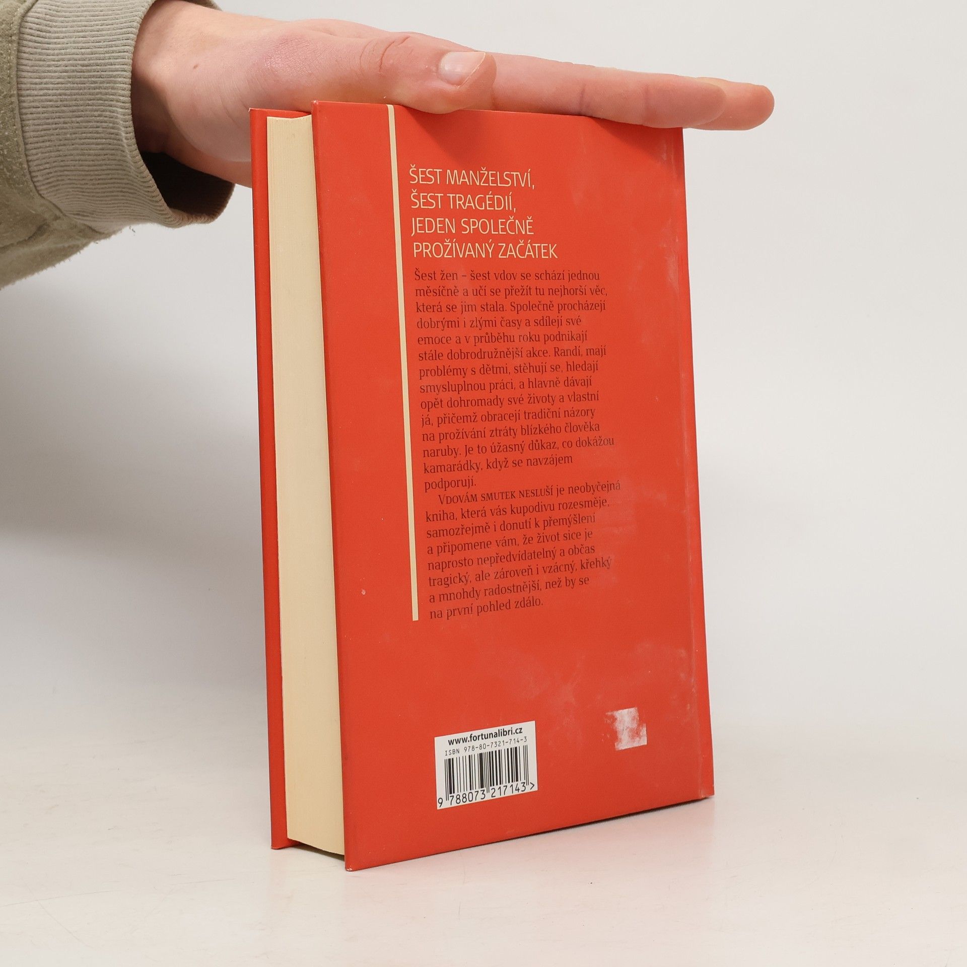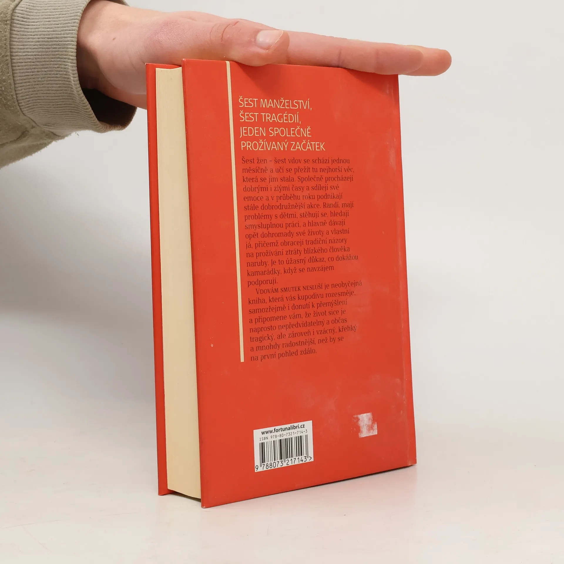 Šest manželství, šest tragédií, jeden společně prožívaný začátek Šest žen – šest vdov se schází jednou měsíčně a učí se přežít tu nejhorší věc, která se jim stala. Společně procházejí dobrými i zlými časy a sdílejí své emoce a v průběhu roku podnikají stále dobrodružnější akce. Randí, mají problémy s dětmi, stěhují se, hledají smysluplnou práci, a hlavně dávají opět dohromady své životy a vlastní já, přičemž obracejí tradiční názory na prožívání ztráty blízkého člověka naruby. Je to úžasný důkaz, co dokážou kamarádky, když se navzájem podporují. Vdovám smutek nesluší je neobyčejná kniha, která vás kupodivu rozesměje, samozřejmě i donutí k přemýšlení a připomene vám, že život sice je naprosto nepředvídatelný a občas tragický, ale zároveň i vzácný, křehký a mnohdy radostnější, než by se na první pohled zdálo.