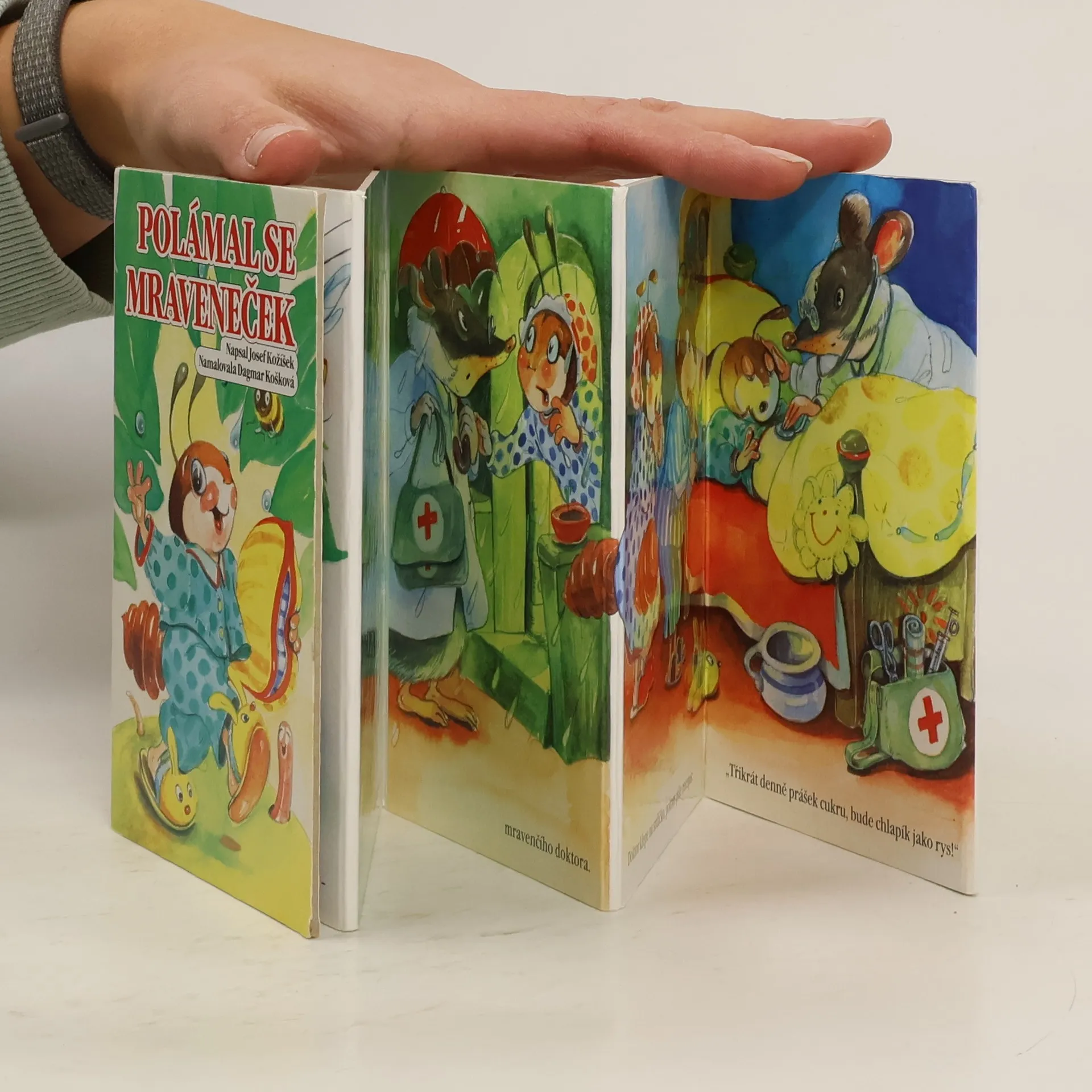 Leporelo obsahuje známou říkanku o nemocném mravenečkovi. Pro předškolní děti.