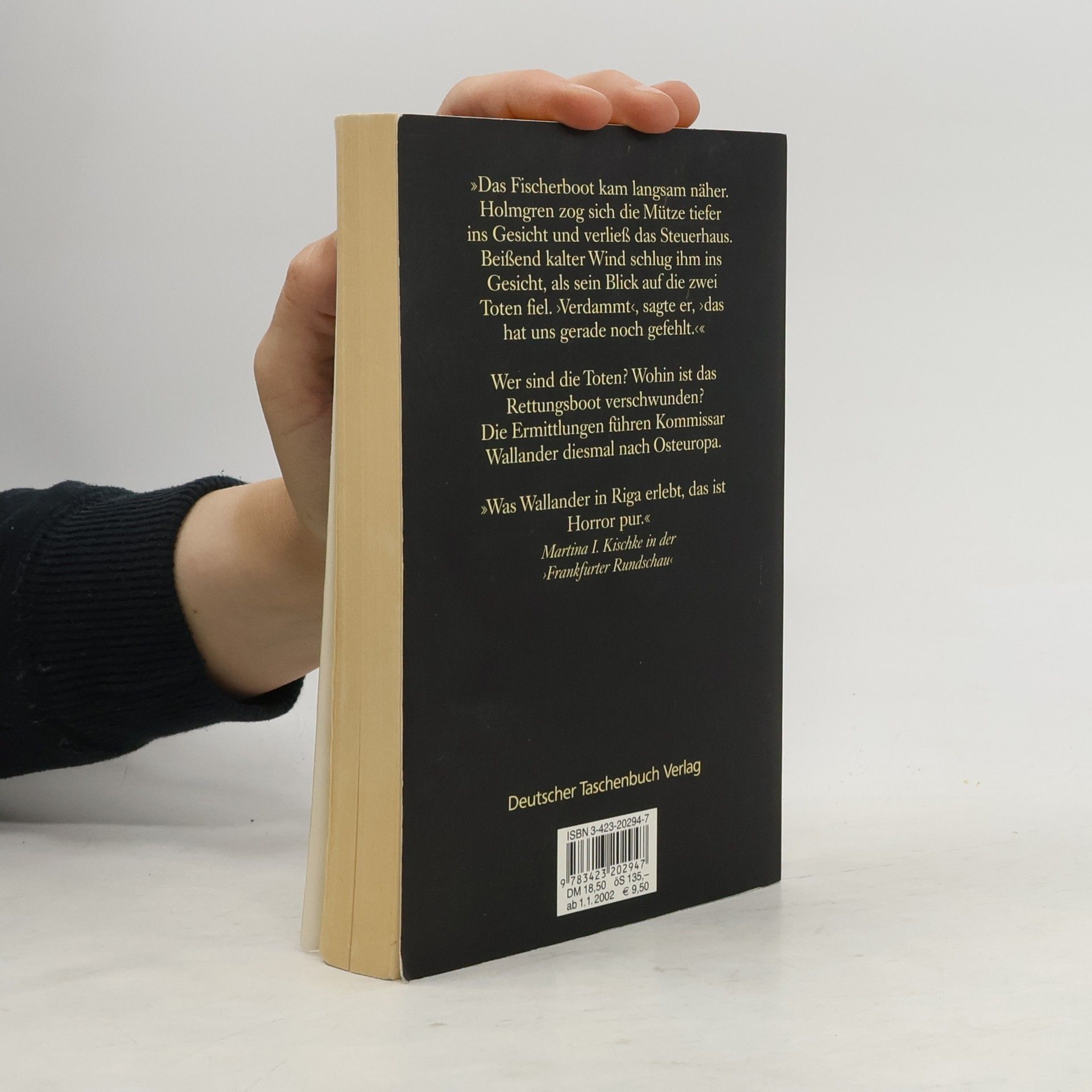 Ein Rettungsboot mit zwei toten Männern treibt an Land. Die Ermittlungen führen nach Osteuropa. Wallanders zweiter Fall. Kriminalkommissar Kurt Wallander saß in seinem Zimmer im Polizeipräsidium von Ystad und gähnte. In diesem Moment kam Martinson ins Zimmer. „Vor ein paar Minuten haben wir einen merkwürdigen Anruf erhalten“, begann er, „er kam aus einer Telefonzelle. Ein Mann behauptete, daß bald irgendwo hier an der Küste ein Rettungsboot mit zwei toten Männern an Land treiben würde. Dann legte er auf.“ - Wer sind die Toten? Und wohin ist das Rettungsboot verschwunden? Die Ermittlungen führen Kommissar Wallander nach Osteuropa. Er gerät immer tiefer hinein in ein kaum noch zu durchschauendes Komplott unsichtbarer Mächte, in dem er nicht nur seinen Glauben an die Gerechtigkeit verliert, sondern auch fast sein Leben läßt.