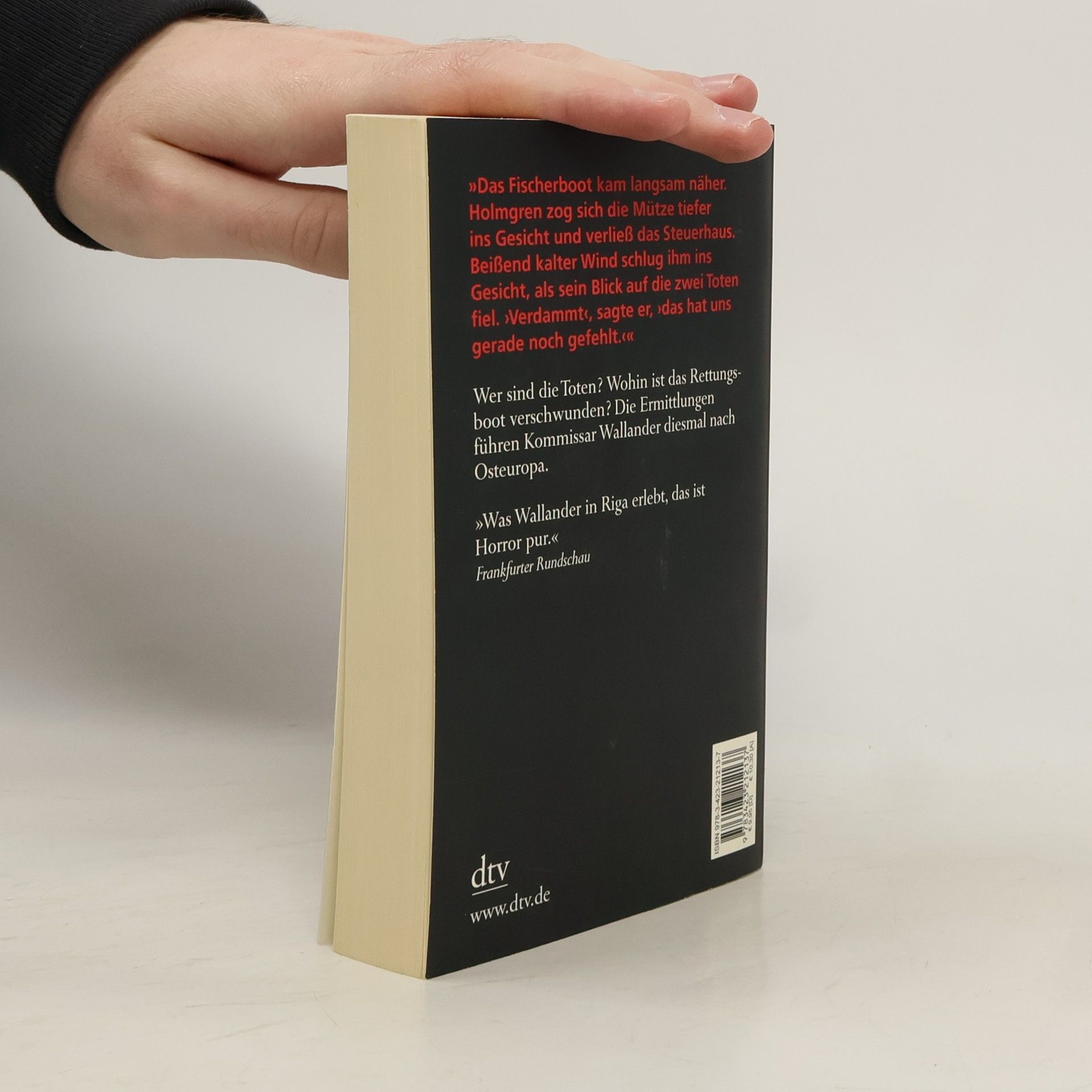 Ein Rettungsboot mit zwei toten Männern treibt an Land. Die Ermittlungen führen nach Osteuropa. Wallanders dritter Fall Kriminalkommissar Kurt Wallander saß in seinem Zimmer im Polizeipräsidium von Ystad und gähnte. In diesem Moment kam Martinson ins Zimmer. ›Vor ein paar Minuten haben wir einen merkwürdigen Anruf erhalten‹, begann er, ›er kam aus einer Telefonzelle. Ein Mann behauptete, daß bald irgendwo hier an der Küste ein Rettungsboot mit zwei toten Männern an Land treiben würde … Dann legte er auf.‹ – Wer sind die Toten? Und wohin ist das Rettungsboot verschwunden? Die Ermittlungen führen Kommissar Wallander nach Osteuropa. Er gerät immer tiefer hinein in ein kaum noch zu durchschauendes Komplott unsichtbarer Mächte, in dem er nicht nur seinen Glauben an die Gerechtigkeit verliert, sondern auch fast sein Leben läßt ...