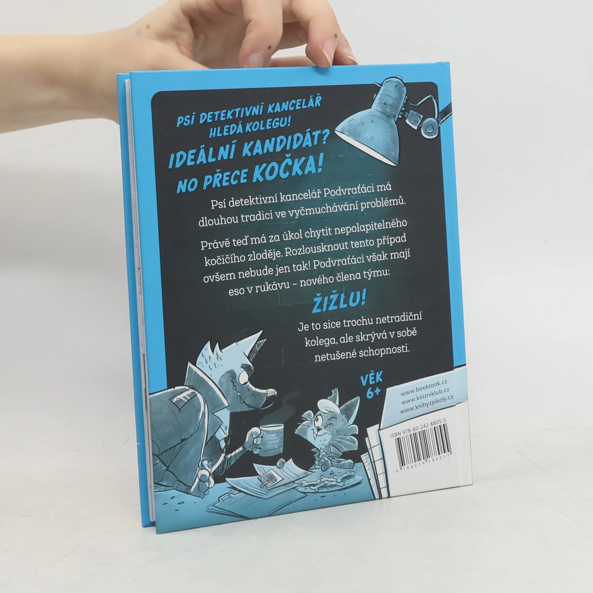 Psí detektivní kancelář hledá kolegu! Zn. Ideální kandidát? No přece kočka! Psí detektivní kancelář Podvraťáci má dlouhou tradici ve vyčmuchávání problémů. Právě teď má za úkol chytit nepolapitelného kočičího zloděje. Rozlousknout tento případ ovšem nebude jen tak. Podvraťáci však mají eso v rukávu – nového člena týmu. Je to sice trochu netradiční kolega, ale skrývá v sobě netušené schopnosti.