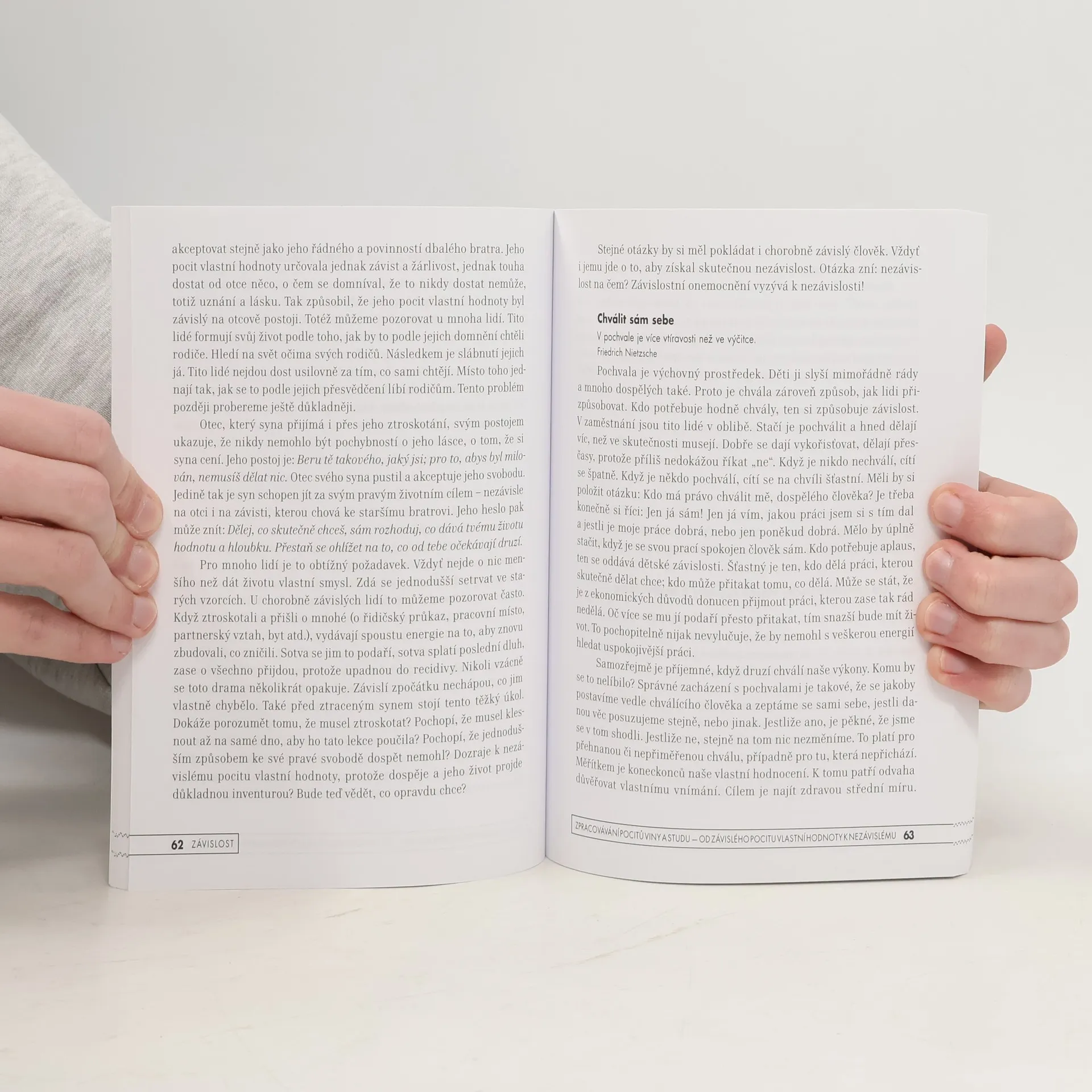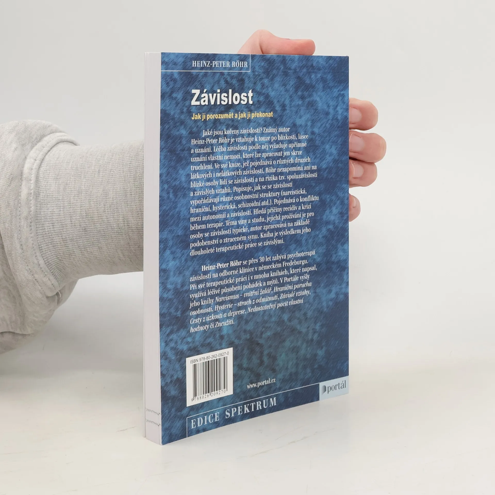 Podtitul: Jak jí porozumět a jak ji překonat. Jaké jsou kořeny závislosti? Známý autor Heinz-Peter Röhr je vztahuje k touze po blízkosti, lásce, uznání. Léčba závislosti podle něj vyžaduje upřímné uznání vlastní nemoci, které lze zpracovat jen skrze truchlení. Ve své knize, jež pojednává o různých druzích látkových i nelátkových závislostí, Röhr nezapomíná ani na blízké osoby lidí se závislostí a na rizika tzv. spoluzávislosti a závislých vztahů. Popisuje, jak se se závislostí vypořádávají různé osobnostní struktury (narcistická, hraniční, hysterická, schizoidní atd.). Pojednává o konfliktu mezi autonomií a závislostí. Hledá příčiny recidiv a krizí během terapie. Téma viny a studu, jejichž prožívání je pro osoby se závislostí typické, autor zpracovává na základě podobenství o ztraceném synu. Kniha je výsledkem jeho dlouholeté terapeutické práce se závislými. Heinz-Peter Röhr se přes 30 let zabývá psychoterapií závislostí na odborné klinice v německém Fredeburgu. Při své terapeutické práci i v mnoha knihách, které napsal, využívá léčivé působení pohádek a mýtů. V Portále vyšly jeho knihy Narcismus – vnitřní žalář, Hraniční porucha osobnosti, Hysterie – strach z odmítnutí, Závislé vztahy, Cesty z úzkosti a deprese, Nedostatečný pocit vlastní hodnoty, Zneužití.