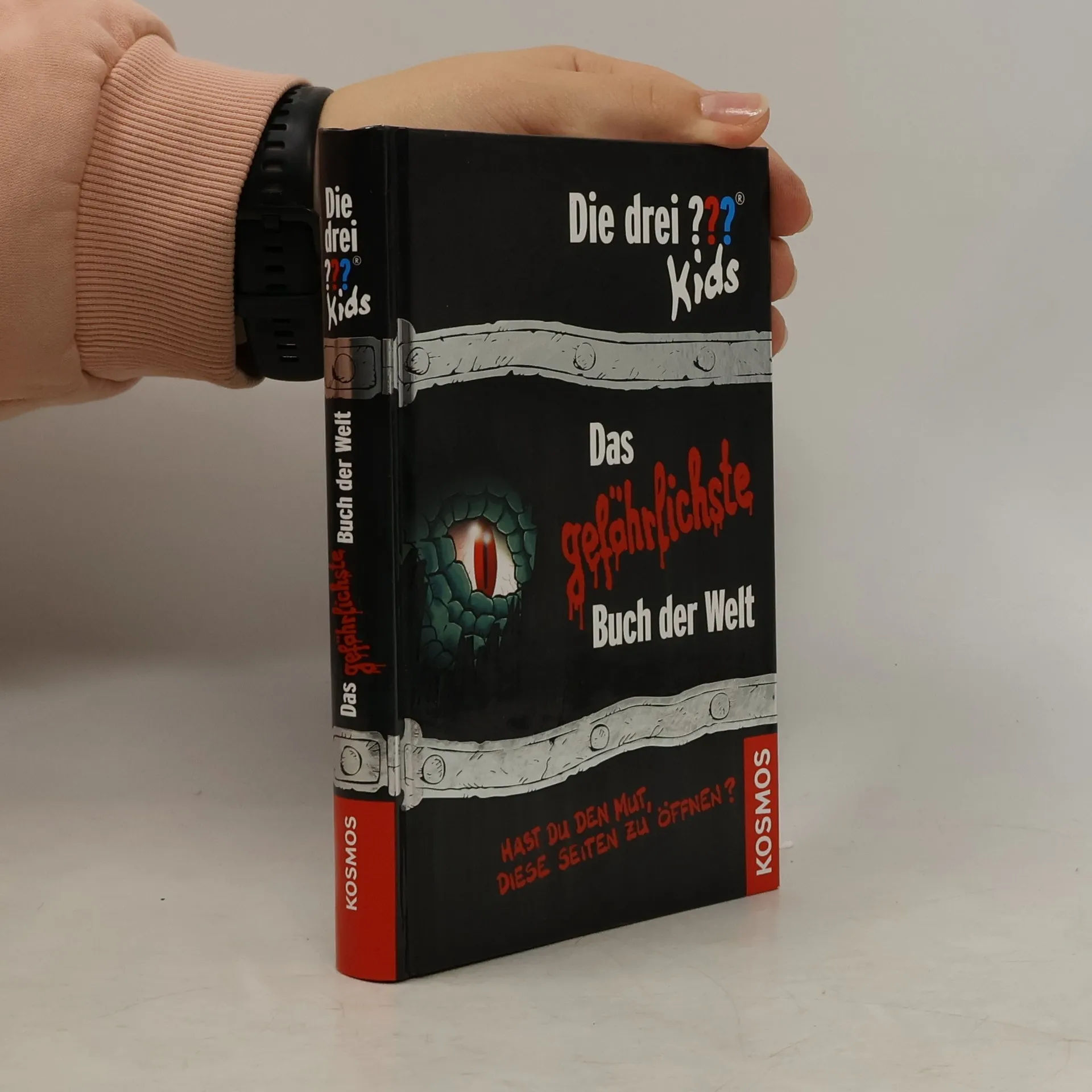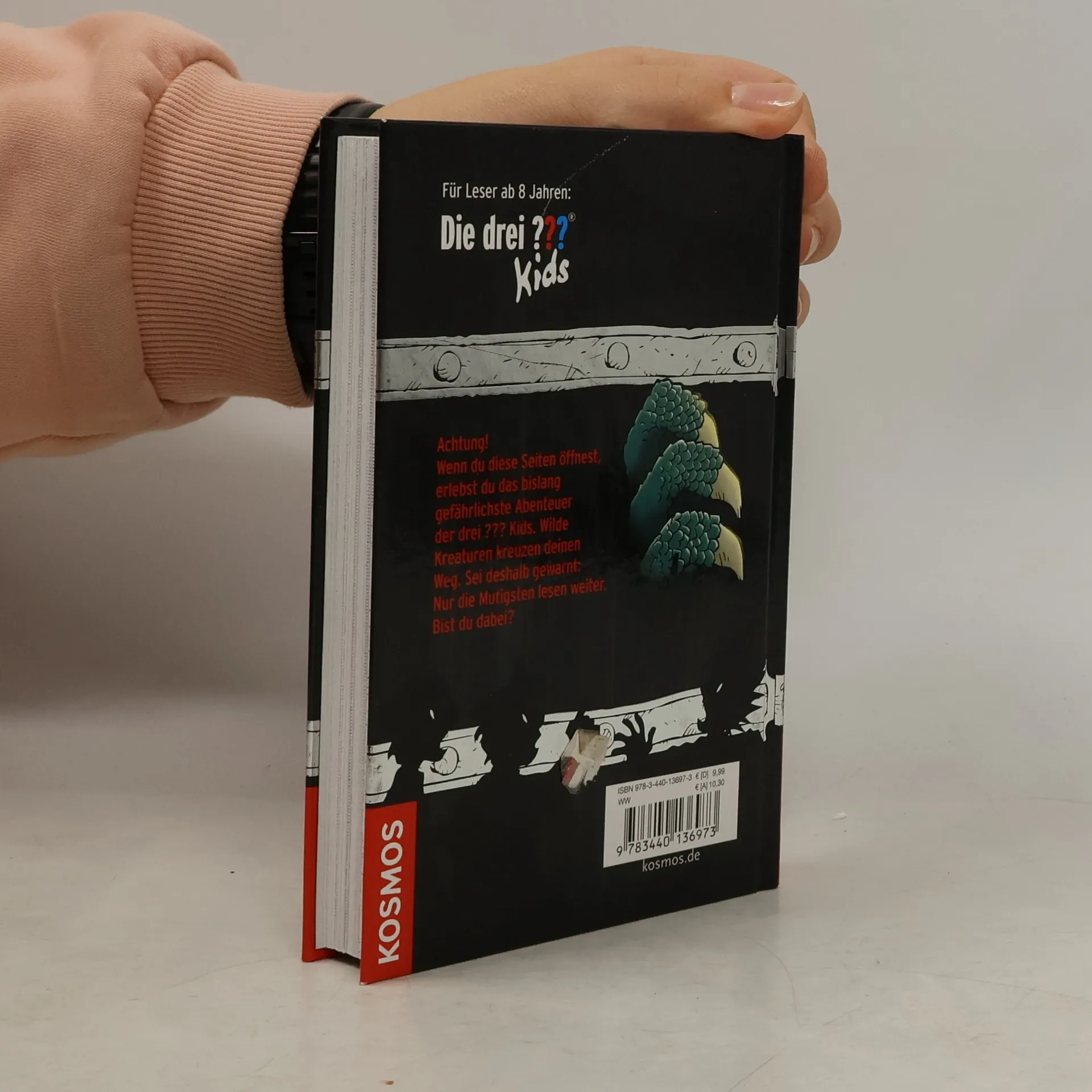 „Die drei ??? Kids“ finden ein Buch, dessen Seiten verschlossen sind, weil angeblich ein Fluch auf ihnen liegt. Von so etwas lassen sich Justus, Peter und Bob natürlich nicht abhalten. Mutig öffnen sie eine Seite nach der anderen und erleben Unglaubliches: Woher kommen die wilden Kreaturen, die ihren Weg kreuzen? Was bedeuten die verschlüsselten Aufzeichnungen? Handelt es sich wirklich um das Forscherhandbuch eines Archäologenteams, das an einem geheimen Ort wertvolle Schätze aus der Urzeit ausgräbt? Nur eins ist klar: Wer in dem gefährlichen Buch liest, ist seines Lebens nicht mehr sicher ...