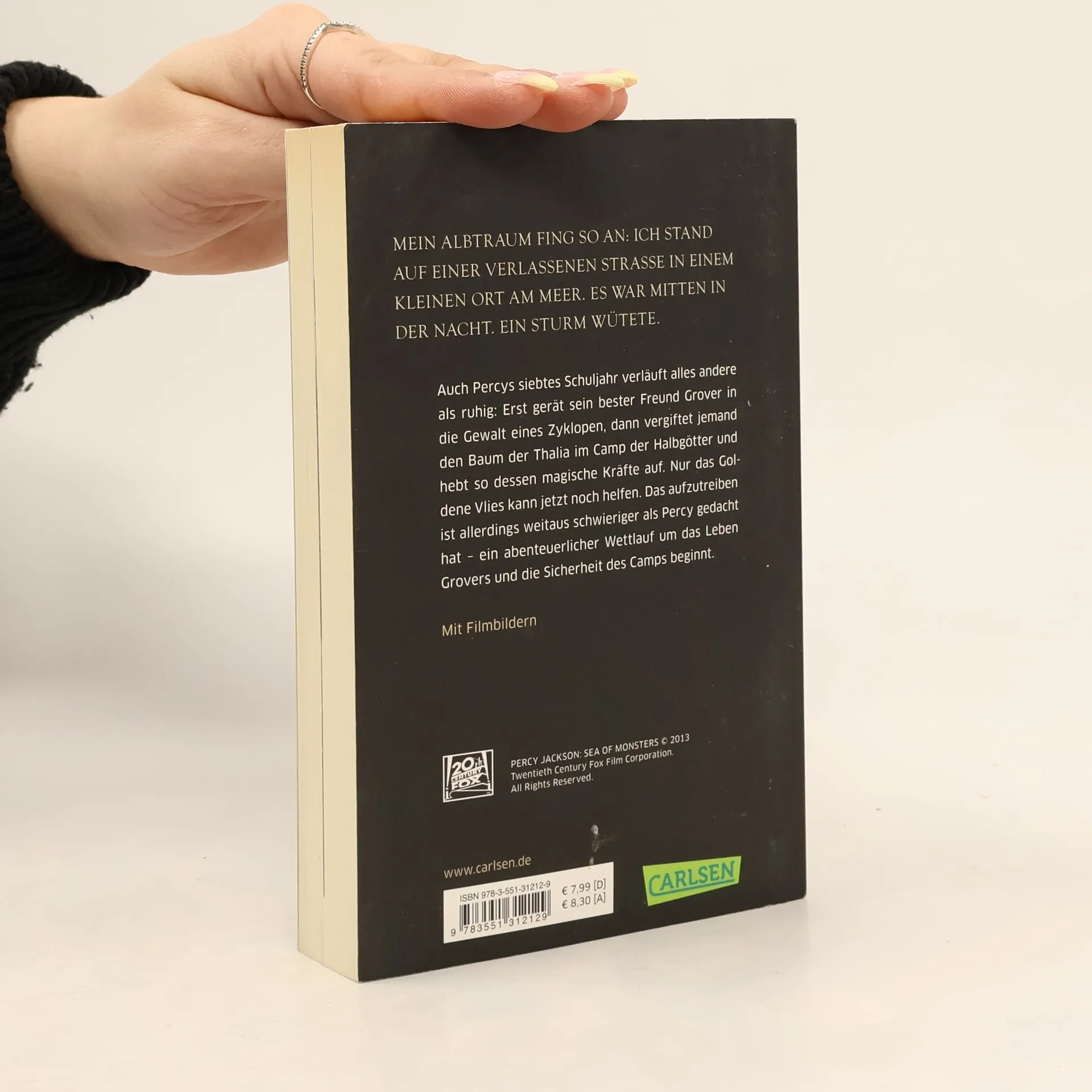 Auch Percys siebtes Schuljahr verläuft alles andere als ruhig: Erst gerät sein bester Freund Grover in die Gewalt eines Zyklopen, dann vergiftet jemand den Baum der Thalia im Camp der Halbgötter und hebt so dessen magische Kräfte auf. Nur das goldene Vlies kann jetzt noch helfen. Das aufzutreiben ist allerdings weitaus schwieriger als Percy gedacht hat - ein abenteuerlicher Wettlauf um das Leben Grovers und die Sicherheit des Camps beginnt.