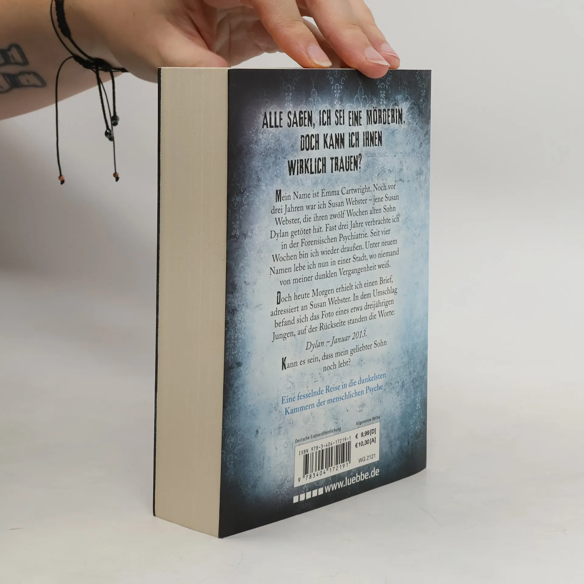 Mein Name ist Emma Cartwright. Noch vor drei Jahren war ich Susan Webster - jene Susan Webster, die ihren zwölf Wochen alten Sohn Dylan getötet hat. Fast drei Jahre verbrachte ich in der Forensischen Psychiatrie. Seit vier Wochen bin ich wieder draußen. Unter neuem Namen lebe ich nun in einer Stadt, wo niemand von meiner dunklen Vergangenheit weiß. Doch heute Morgen erhielt ich einen Brief, adressiert an Susan Webster. In dem Umschlag befand sich das Foto eines etwa dreijährigen Jungen, auf der Rückseite standen die Worte: Dylan - Januar 2013. Kann es sein, dass mein geliebter Sohn noch lebt?