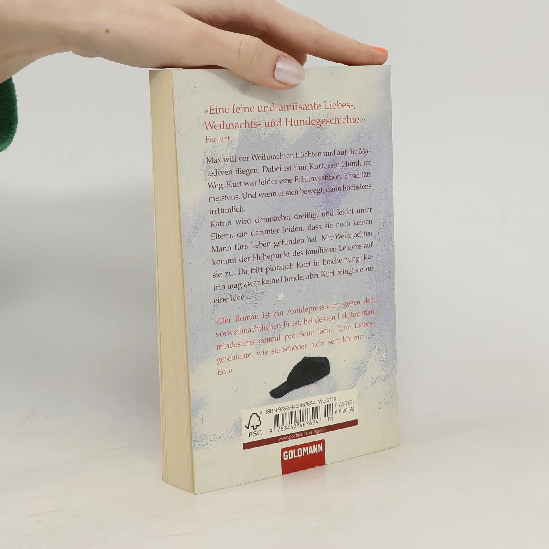 Eine Liebesgeschichte, wie sie schöner nicht sein könnte Max will vor Weihnachten flüchten und auf die Malediven fliegen. Dabei ist ihm Kurt, sein Hund, im Weg. Kurt war leider eine Fehlinvestition. Er schläft meistens. Und wenn er sich bewegt, dann höchstens irrtümlich. Katrin wird demnächst dreißig und leidet unter Eltern, die darunter leiden, dass sie noch keinen Mann fürs Leben gefunden hat. Mit Weihnachten kommt der Höhepunkt des familiären Leidens auf sie zu. Da tritt plötzlich Kurt in Erscheinung. Katrin mag zwar keine Hunde, aber Kurt bringt sie auf eine Idee …