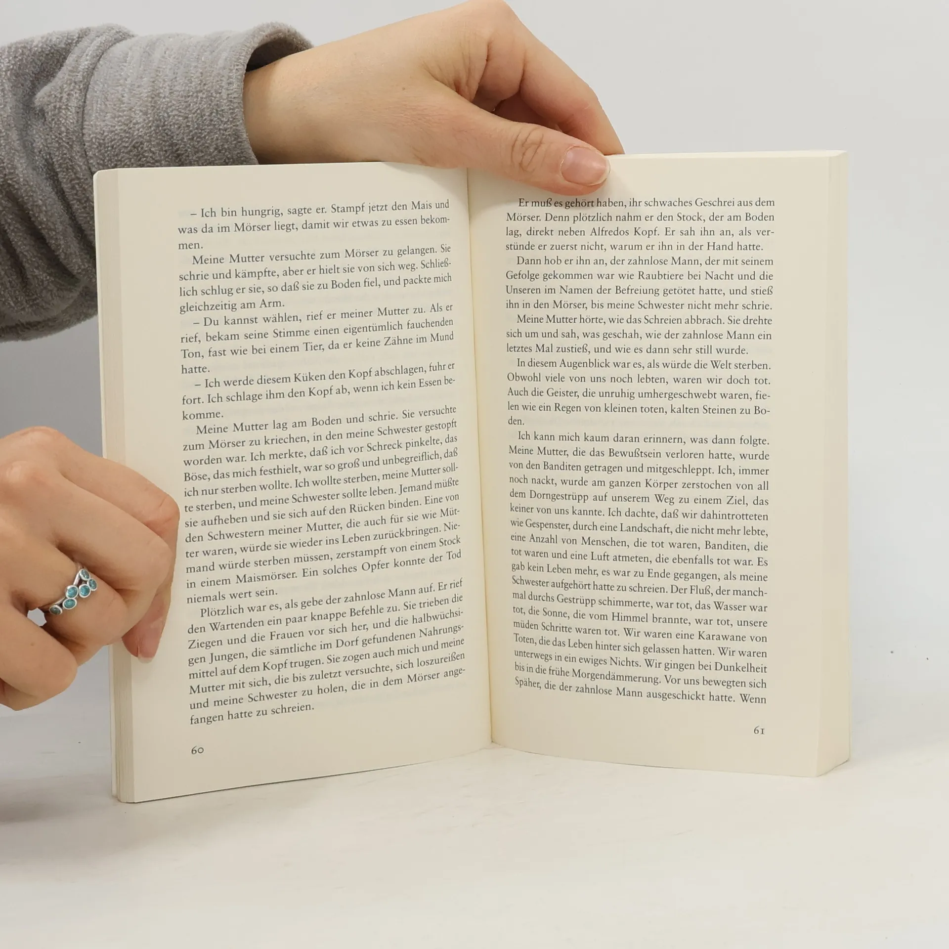 Geschichte eines Straßenkindes »Man kann fliegen, ohne sichtbare Flügel zu haben.« Nelio, ein zehnjähriges Straßenkind, erzählt um sein Leben. Er liegt mit einer Schußwunde auf dem Dach eines afrikanischen Hauses und weiß, daß er sterben wird, sobald seine Geschichte zu Ende ist. Er erzählt, wie die Banditen sein Dorf überfielen, seine Schwester massakrierten und ihn zwingen wollten, seine Verwandten zu töten. Wie er floh, den Weg in die große Stadt fand und Anführer einer Bande von Straßenkindern wurde. Vor allem aber erzählt er vom Leben dieser schwarzen Kinder. Von Mandioca, der Tomaten und Zwiebeln in seinen Taschen wachsen läßt, und von Deolinda, einem Albinomädchen, das die sexuellen Phantasien der Jungen erregt. Vom Geheimnis des Reichtums erzählt er, einer vertrockneten Eidechse in einem gestohlenen Aktenkoffer und einem nächtlichen Besuch beim Präsidenten. Und vom Paradies, das auf keiner Landkarte verzeichnet ist und das man doch finden kann.