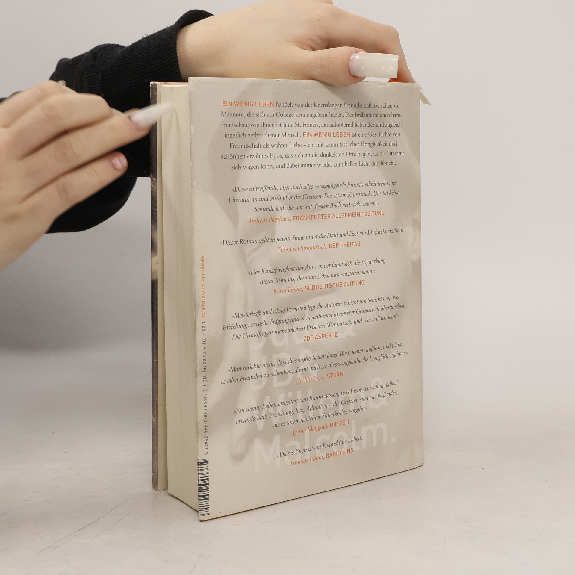 „Ein wenig Leben“ handelt von der lebenslangen Freundschaft zwischen vier Männern in New York, die sich am College kennengelernt haben. Jude St. Francis, brillant und enigmatisch, ist die charismatische Figur im Zentrum der Gruppe – ein aufopfernd liebender und zugleich innerlich zerbrochener Mensch. Immer tiefer werden die Freunde in Judes dunkle, schmerzhafte Welt hineingesogen, deren Ungeheuer nach und nach hervortreten. „Ein wenig Leben“ ist ein rauschhaftes, mit kaum fasslicher Dringlichkeit erzähltes Epos über Trauma, menschliche Güte und Freundschaft als wahre Liebe. Es begibt sich an die dunkelsten Orte, an die Literatur sich wagen kann, und bricht dabei immer wieder zum hellen Licht durch.