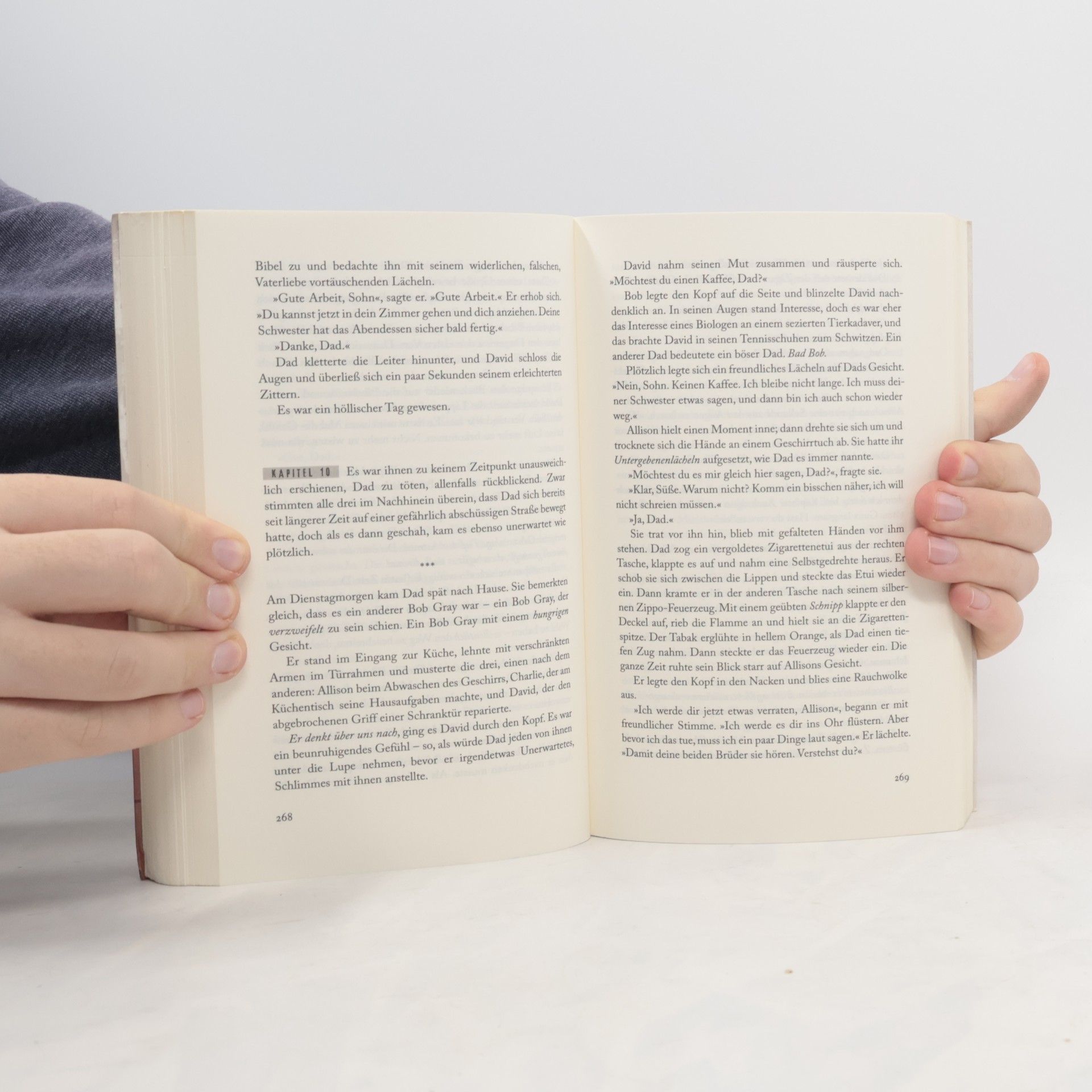 Evolviere! – David starrt den Brief an, in dem nur dieses eine Wort steht, und schon kehren die grausamen Erinnerungen zurück: wie seine alleinstehende Mutter tödlich verunglückte, als er sechs Jahre alt war. Wie er zusammen mit zwei weiteren Kindern von einem Mann adoptiert wurde, den sie "Vater" nennen sollten. Wie dieser seine Adoptivkinder mit Brutalität und Grausamkeit dazu bewegen wollte, zu "evolvieren." Zwanzig Jahre später hat David sich zum angesehenen Schriftsteller entwickelt, doch die Schatten seiner Vergangenheit scheinen nicht ruhen zu wollen. Damals hatten die Kinder einhellig Vaters Tod beschlossen und sind ein großes Wagnis eingegangen. Hat Vater überlebt? Beginnt der Albtraum für David von Neuem?