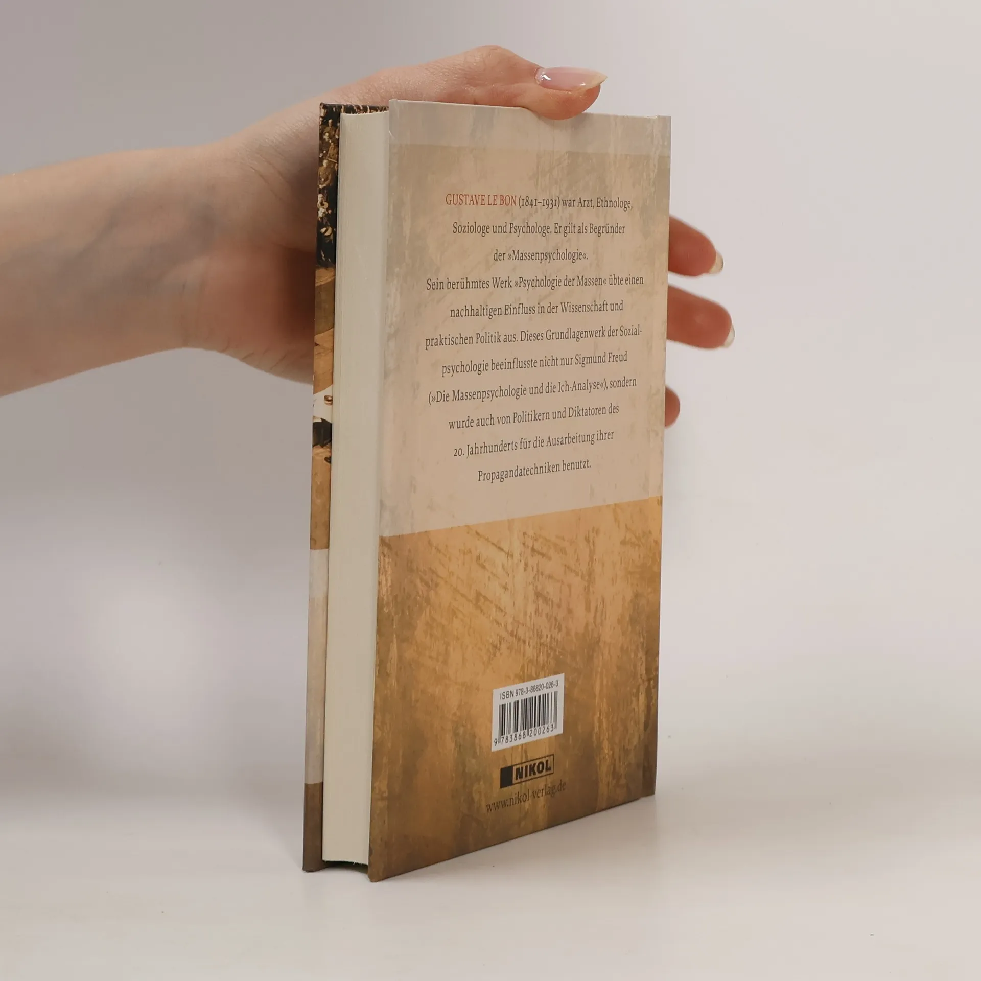 GUSTAVE LE BON (1841-1931) Arzt, Ethnologe, Soziologe und Psychologe. Er gilt als Begründer der 'Massenpsychologie'. Sein berühmtes Werk 'Psychologie der Massen' übte einen nachhaltigen Einfl uss in der Wissenschaft und praktischen Politik aus. Dieses Grundlagenwerk der Sozialpsychologie beeinfl usste nicht nur Siegmund Freud ('Die Massenpsychologie und die Ich-Analyse'), sondern wurde auch von Politikern und Diktatoren des 20. Jahrhunderts für die Ausarbeitung ihrer Propagandatechniken benutzt.