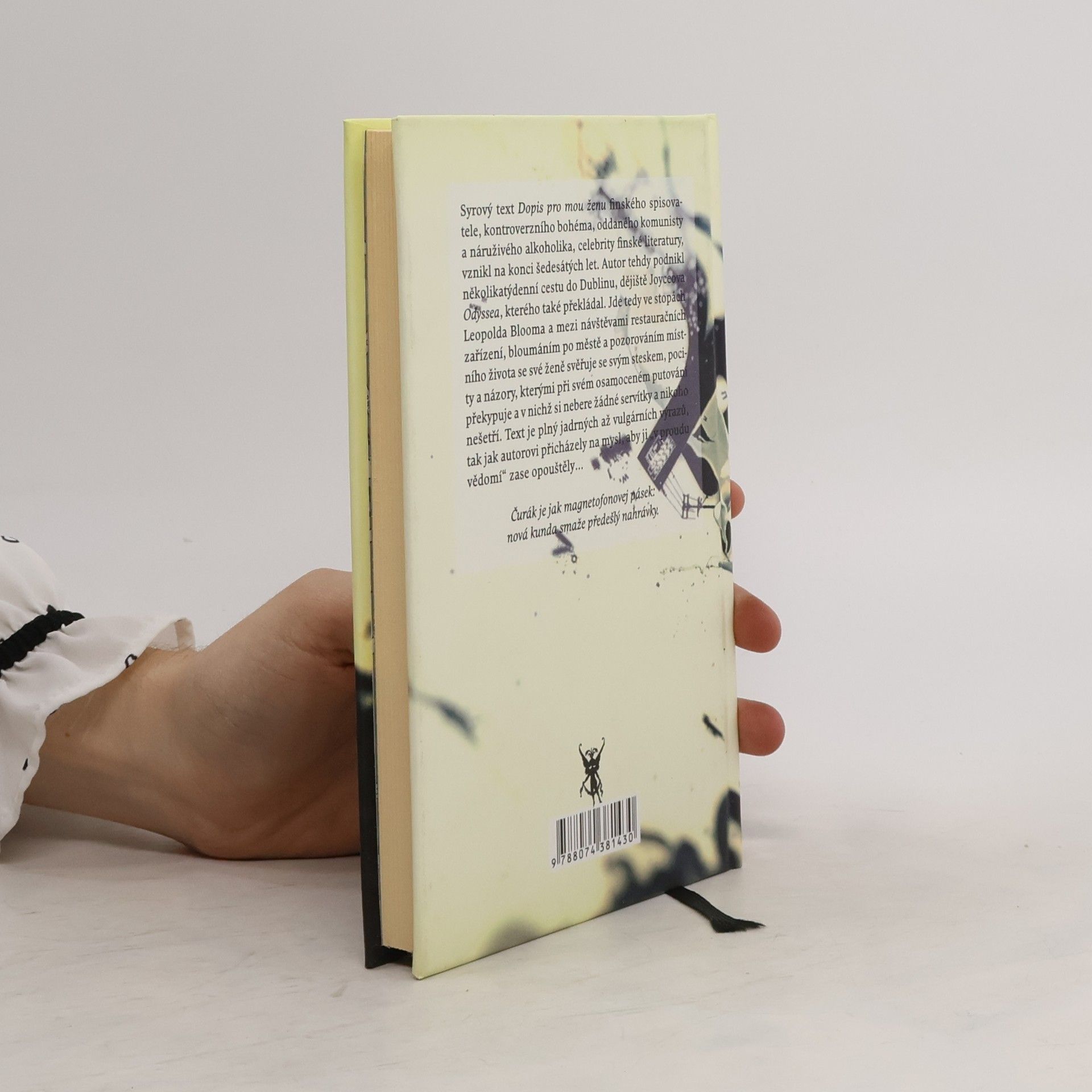 Syrový text Dopis pro mou ženu finského spisovatele, kontroverzního bohéma, oddaného komunisty a náruživého alkoholika, celebrity finské literatury, vznikl na konci šedesátých let. Autor tehdy podnikl několikatýdenní cestu do Dublinu, dějiště Joyceova Odyssea, kterého také překládal. Jde tedy ve stopách Leopolda Blooma a mezi návštěvami restauračních zařízení, bloumáním po městě a pozorováním místního života se své ženě svěřuje se svým steskem, pocity a názory, kterými při svém osamoceném putování překypuje a v nichž si nebere žádné servítky a nikoho nešetří. Text je plný jadrných až vulgárních výrazů, tak jak autorovi přicházely na mysl, aby ji „v proudu vědomí“ zase opouštěly...