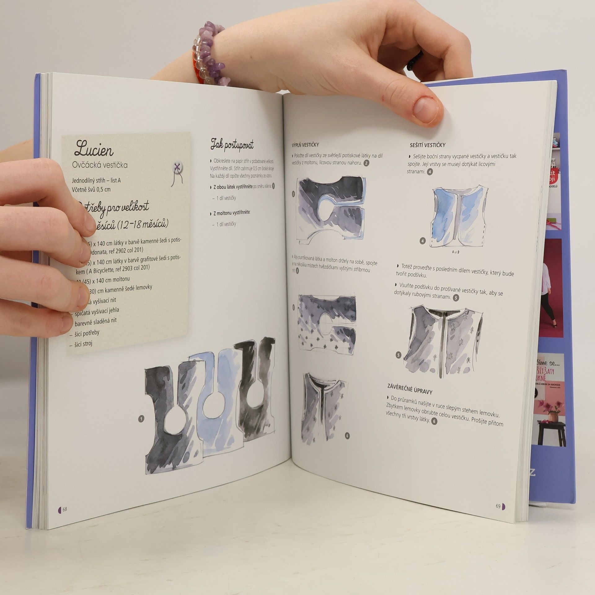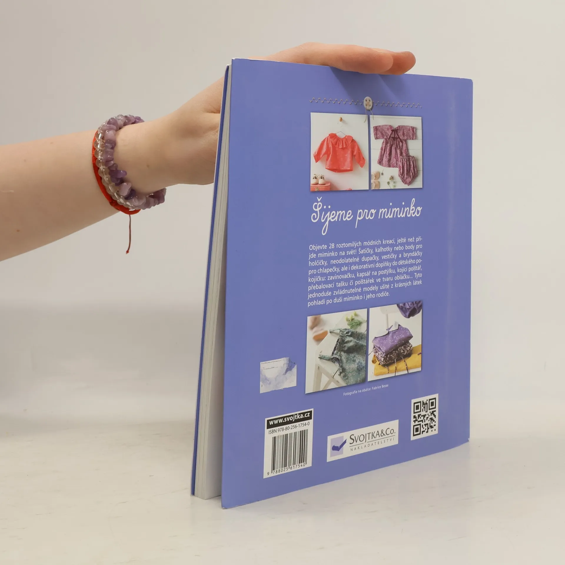 Pro budoucí rodiče, „švadleny či krejčí“ zde čekají postupy tvorby 28 modelů a věcí pro kluky a holčičky – krok za krokem, s názornými fotografiemi i střihy. Přeloženo z francouzštiny. První české vydání.