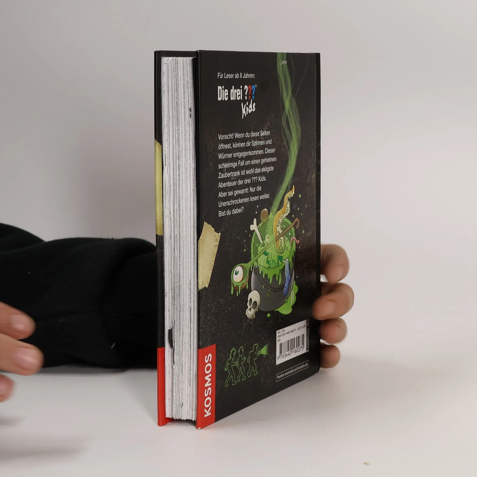 Auf Onkel Titus‘ Schrottplatz fällt den drei ??? Kids ein altes, zerschlissenes Buch in die Hände. Etwa das Werk einer Hexe? Unter den Zaubersprüchen im Buch finden Justus, Peter und Bob auch ein Hexenmeister-Rezept, welches unendliche Weisheit verspricht. Aber noch bevor die Freunde den Trank zusammenbrauen können, ist schon ein ganzer Trupp finsterer Gestalten hinter ihnen her … Nicht nur die Entschlossenheit der drei Detektive ist hier gefragt, auch die Leser müssen mithelfen und die verschlossenen Seiten des Buchs auftrennen. Nur dann können die drei ??? den ekligen Fall lösen – Spannung und Nervenkitzel garantiert!