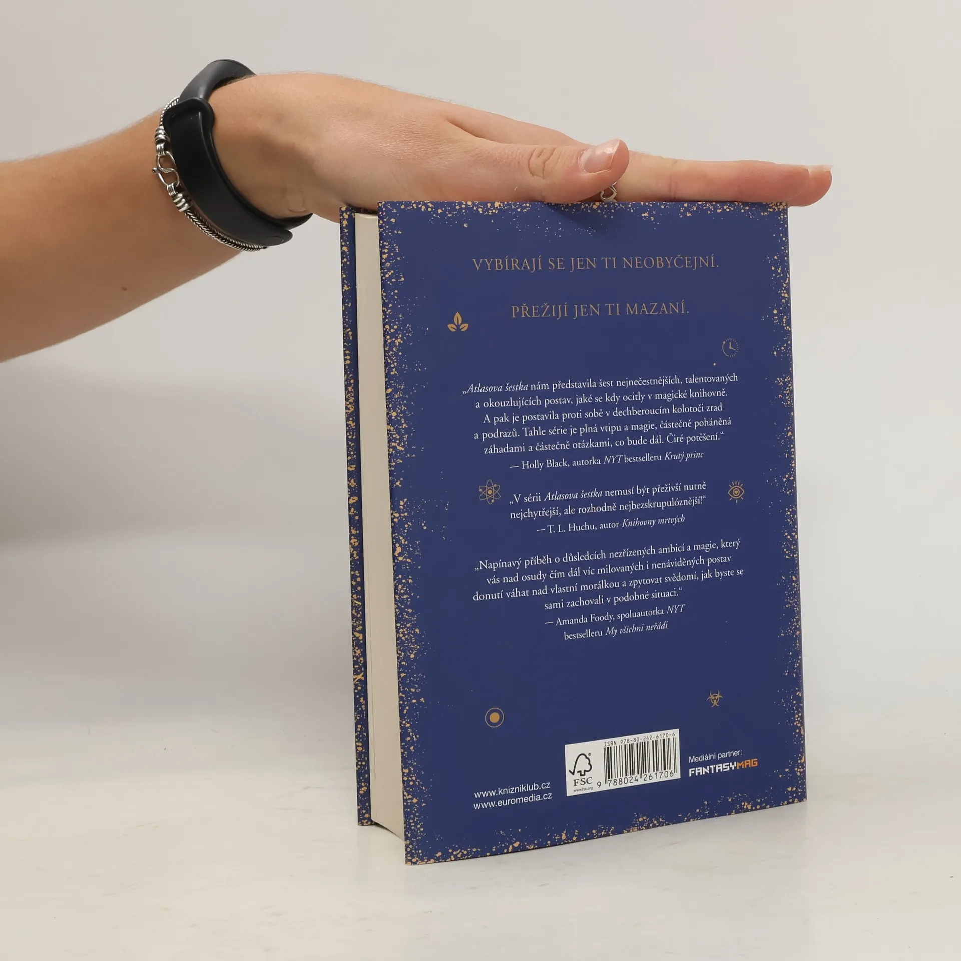 Moc má svou cenu… Atlasův komplex je dlouho očekávané pokračování bestsellerů Atlasova šestka, a také Atlasův paradox – s ještě vyššími sázkami i vášní. Po dramatickém návratu do knihovny Sídla je šestice členů Alexandrijské společnosti zranitelnější než kdy dřív. Stará spojenectví se rychle rozpadají, protože si zasvěcení osvojují protichůdné strategií, aby se vypořádali se smrtící dohodou, kterou se jim dosud nepodařilo dodržet. Ti, kdo zůstávají v archivech, zápasí s následky svých astronomických schopností, zatímco nepravděpodobná dvojice z předchozího výběru Společnosti ovlivňuje politiku na globální scéně. Zatímco okolní svět se stále mobilizuje, aby je zničil, sám Správce, Atlas Blakely, přichází s plánem, který se mění v závod o přežití. Šest rekrutů Společnosti tak stojí před otázkou, co jsou ochotni zradit pro neomezenou moc… a kdo bude cestou zničen.