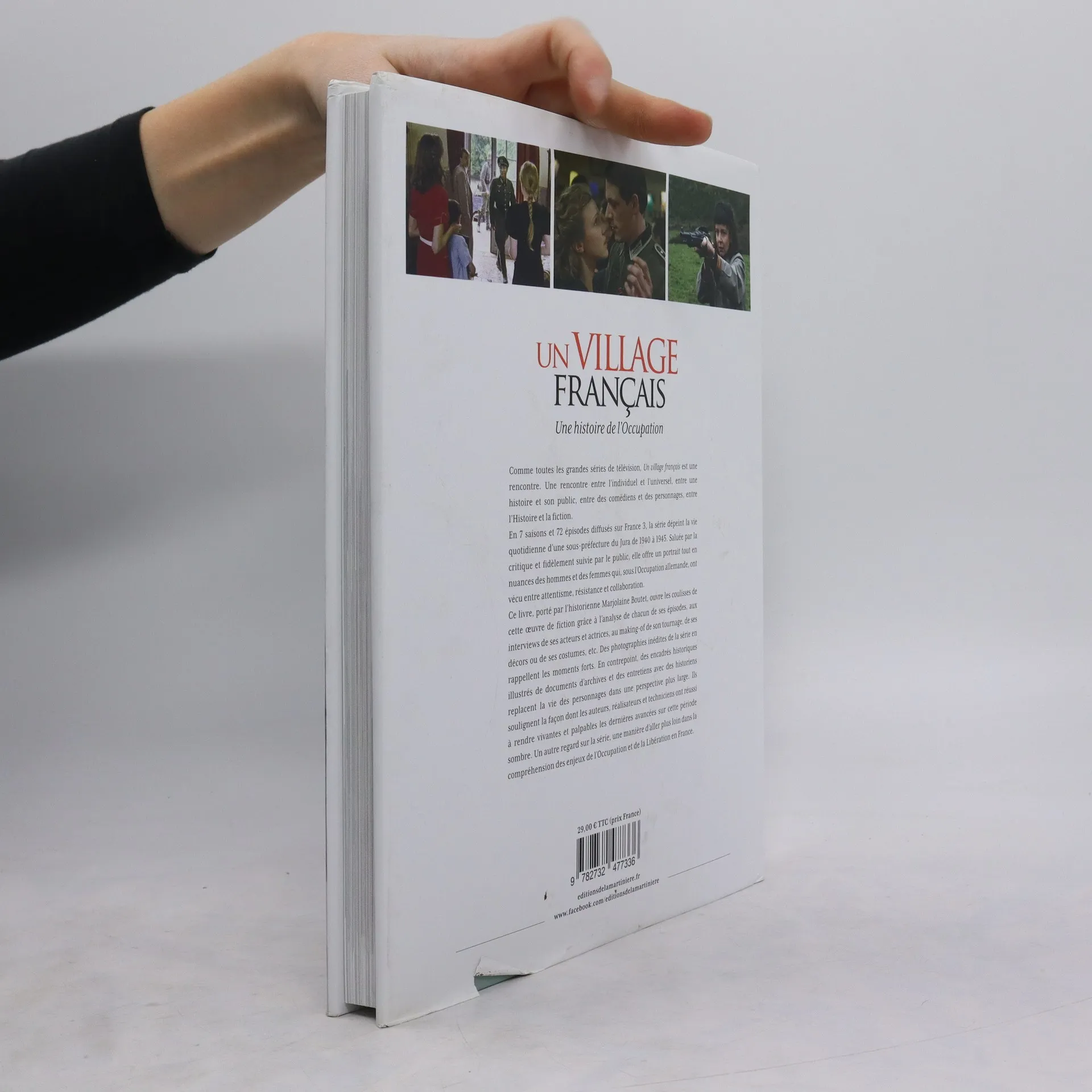 Diffusée depuis juin 2009 en prime time sur France Télévisions, la série Un village français marque son époque par sa justesse de ton et son souci d'exactitude historique. Saluée par les critiques et fidèlement suivie par le public, cette fiction dépeint la vie d'une sous-préfecture du Jura sous l'Occupation allemande (1940-1945). Elle offre un portrait tout en nuances de la société française de l'époque, à hauteur de ceux et celles qui vivent la guerre, partagés entre attentisme, résistance et collaboration. Couvrant l'intégralité des saisons 1 à 7, ce livre richement illustré ouvre les coulisses de la série, donne la parole aux comédiens, dévoile le making-of, la réalisation des décors, des costumes, des coiffures... Porté par le regard de l'historienne Marjolaine Boutet, l'ouvrage analyse la série, ses techniques de narration, l'évolution de ses personnages et sa manière non manichéenne de représenter l'Histoire. En contrepoint, de nombreux focus historiques et des interviews d'historiens mettent en lumière les faits marquants de la Seconde Guerre mondiale et reviennent sur la vie quotidienne des civils dans ces années noires.
