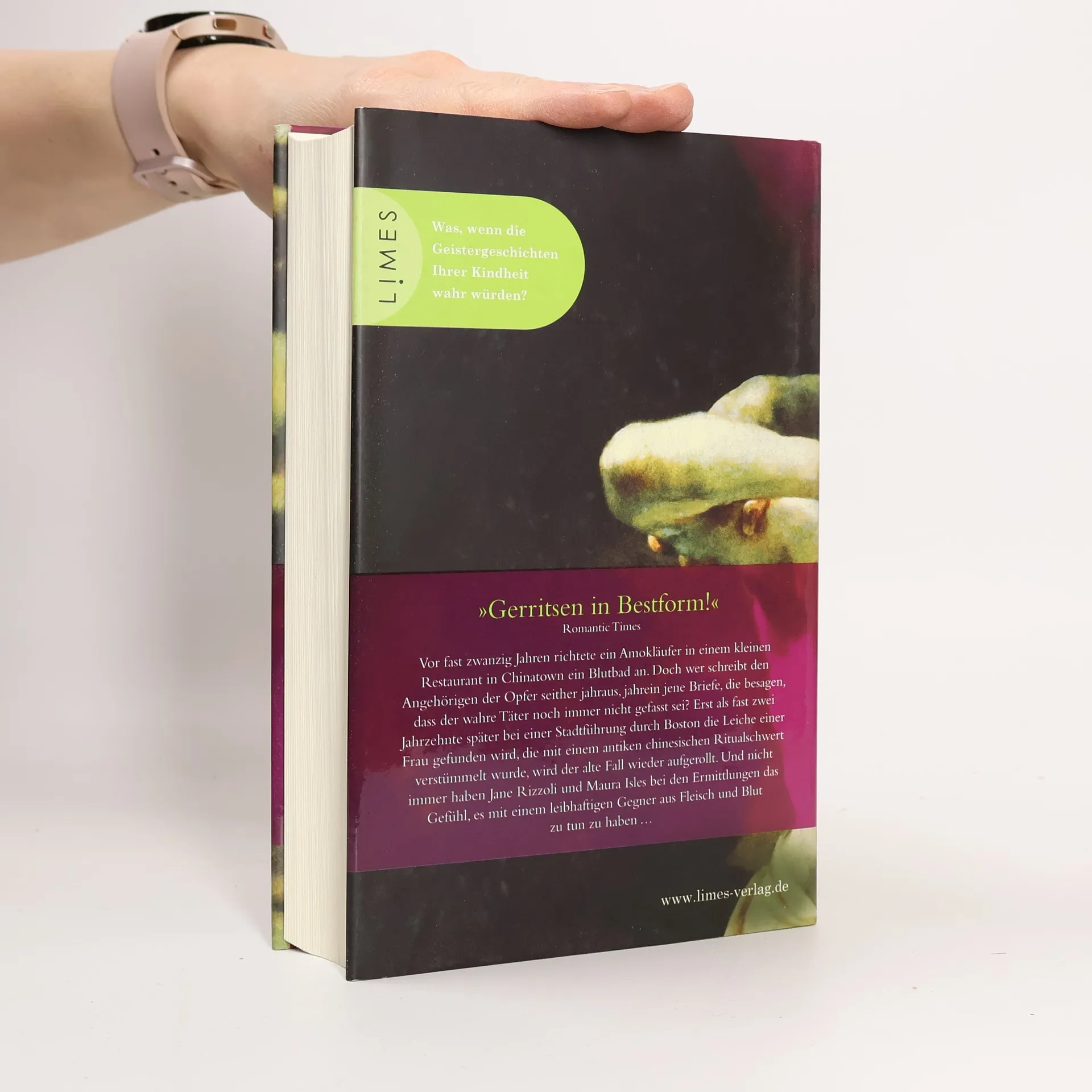 Wohliger Schauer oder nackte Angst. Was, wenn die Geistergeschichten Ihrer Kindheit wahr würden? Jahraus, jahrein werden sie an den schrecklichen Tag erinnert, da in einem kleinen Restaurant in Chinatown ein Amokläufer ihre Angehörigen hinrichtete. Doch wer schreibt die Briefe, die besagen, dass der wahre Täter noch immer nicht gefasst sei? Erst als neunzehn Jahre später bei einer Stadtführung durch Boston die Leiche einer Frau gefunden wird, die mit einem antiken chinesischen Ritualschwert verstümmelt wurde, wird der alte Fall wiederaufgerollt. Und nicht immer haben Jane Rizzoli und Maura Isles bei den Ermittlungen das Gefühl, es mit einem leibhaftigen Gegner aus Fleisch und Blut zu tun zu haben.