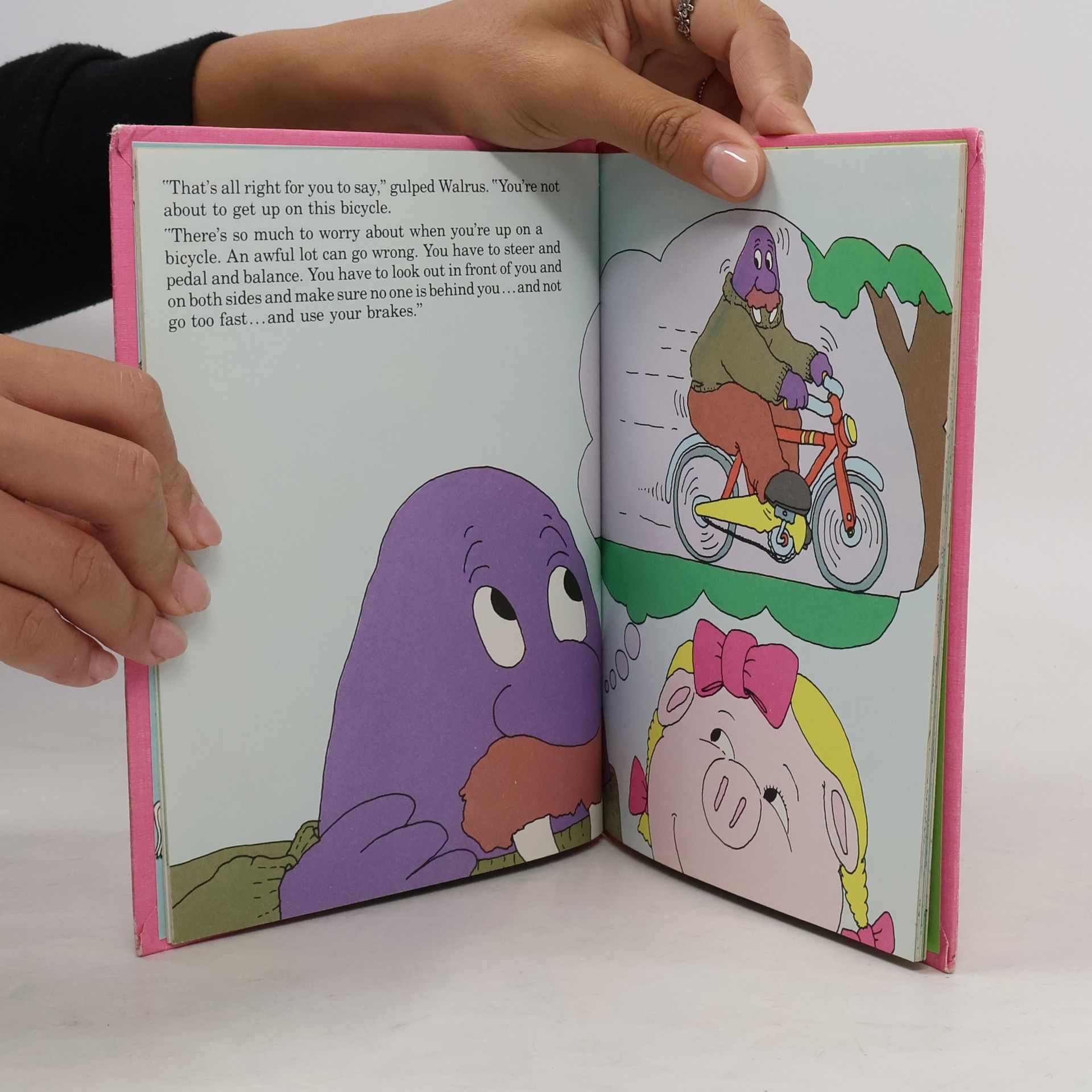 Worried Walrus worries a lot—especially about riding a bicycle. His imagination tries to take the best of him while he works to overcome his fears with the help of his friend, Pig.