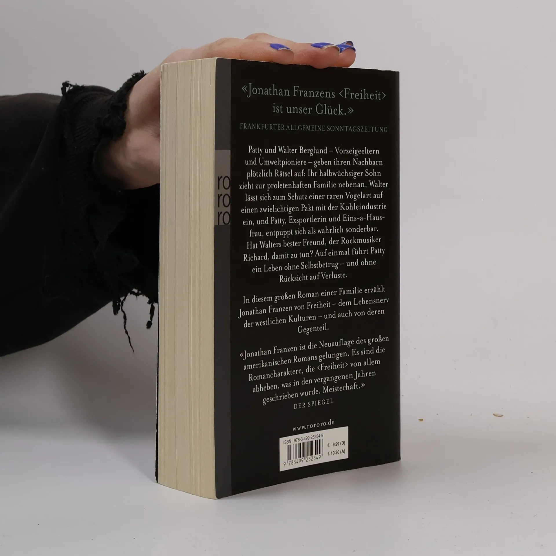 Patty und Walter Berglund – Vorzeigeeltern und Umweltpioniere – geben ihren Nachbarn plötzlich Rätsel auf: Ihr halbwüchsiger Sohn zieht zur proletenhaften Familie nebenan, Walter lässt sich zum Schutz einer raren Vogelart auf einen zwielichtigen Pakt mit der Kohleindustrie ein, und Patty, Exsportlerin und Eins-a-Hausfrau, entpuppt sich als wahrlich sonderbar. Hat Walters bester Freund, der Rockmusiker Richard, damit zu tun? Auf einmal führt Patty ein Leben ohne Selbstbetrug – und ohne Rücksicht auf Verluste. In diesem großen Roman einer Familie erzählt Jonathan Franzen von Freiheit – dem Lebensnerv der westlichen Kulturen – und auch von deren Gegenteil.