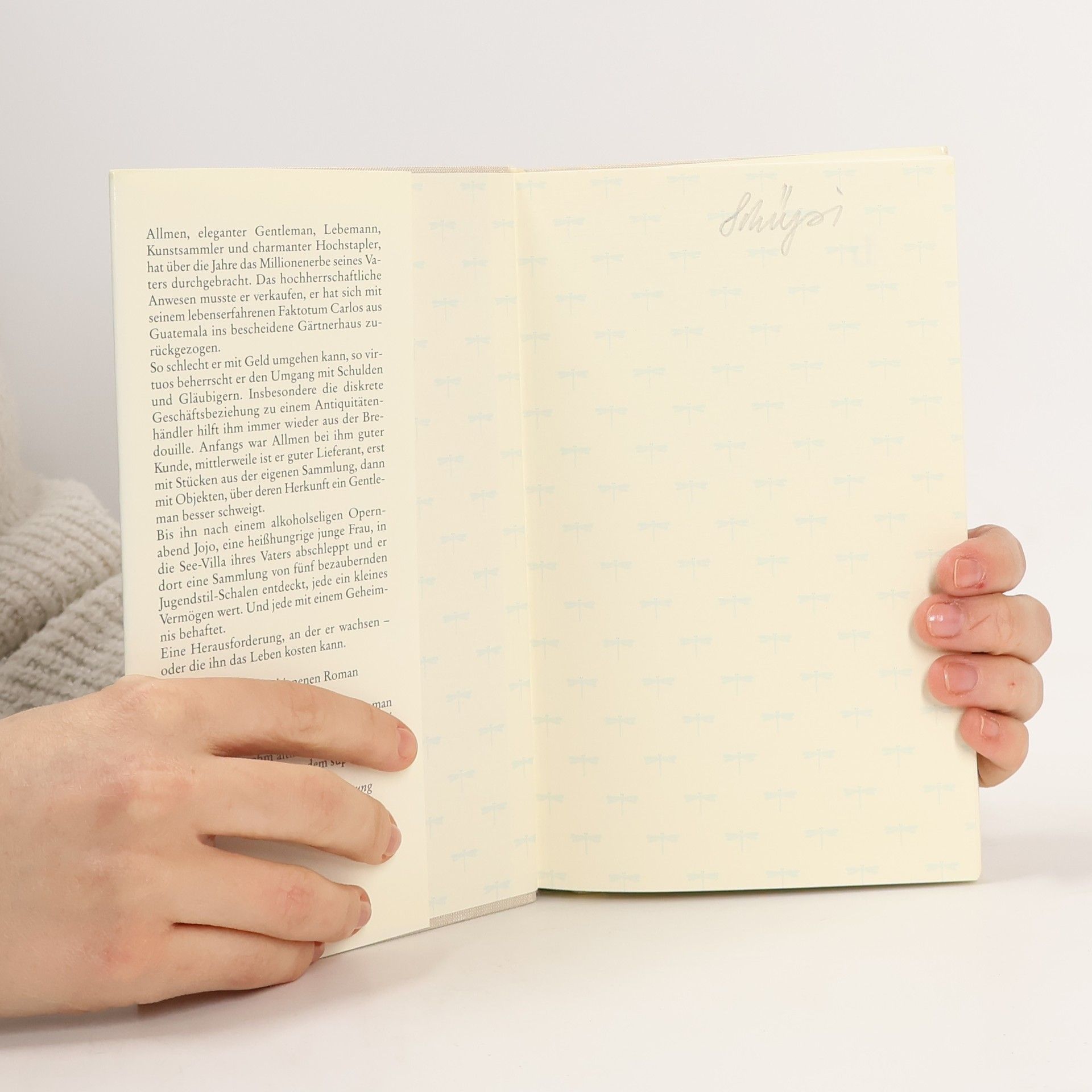 Allmen, eleganter Lebemann und Feingeist, ist über die Jahre finanziell in die Bredouille geraten. Fünf zauberhafte Jugendstil-Schalen bringen ihn und sein Faktotum Carlos auf eine Geschäftsidee: eine Firma für die Wiederbeschaffung von schönen Dingen. Die Geburt eines ungewöhnlichen Ermittlerduos und der Start einer wunderbaren Krimiserie.