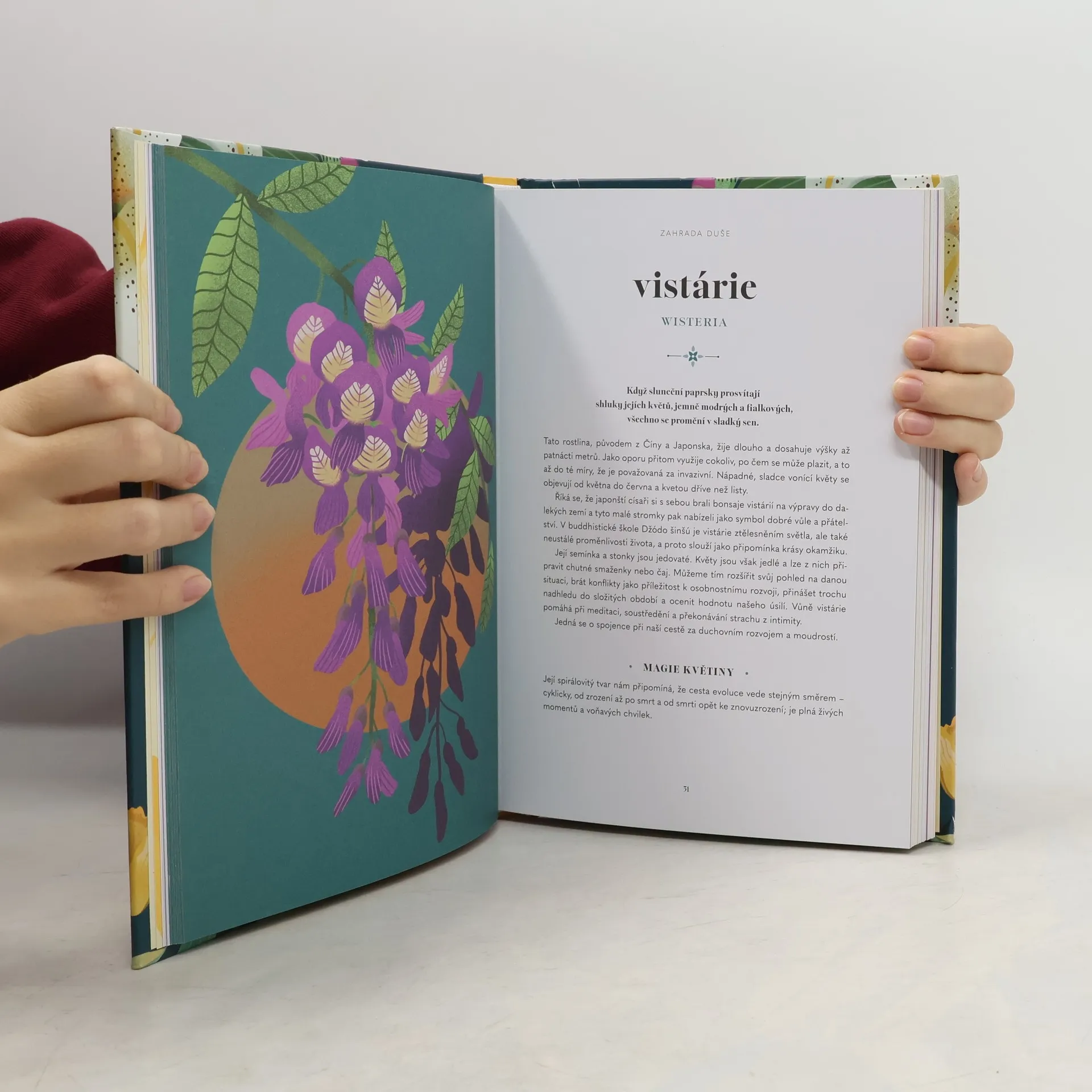Odhalte léčebné a magické vlastnosti šedesáti květin, které ovlivňují naši psychiku, otevírají srdce, léčí naše vztahy nebo nám dokážou pročistit hlavu a umožňují nám myslet jasně. Květiny mají svůj vlastní jazyk: hovoří krásou, odolností, smutkem, láskou a magií. Pokud této dechberoucí sémantice porozumíme, otevře se námúplně nový svět jazyků a vyjadřování. Tato nádherně ilustrovaná kniha odkrývá mocnou symboliku, jež si s sebou každá květina nese. Vyobrazuje ty nejkrásnější, nejznámější a také nejzáhadnější rostliny (jako je modrý leknín, bez, amarylka, heřmánek nebo levandule), které nám příroda nabízí, a odhaluje jejich skrytý význam