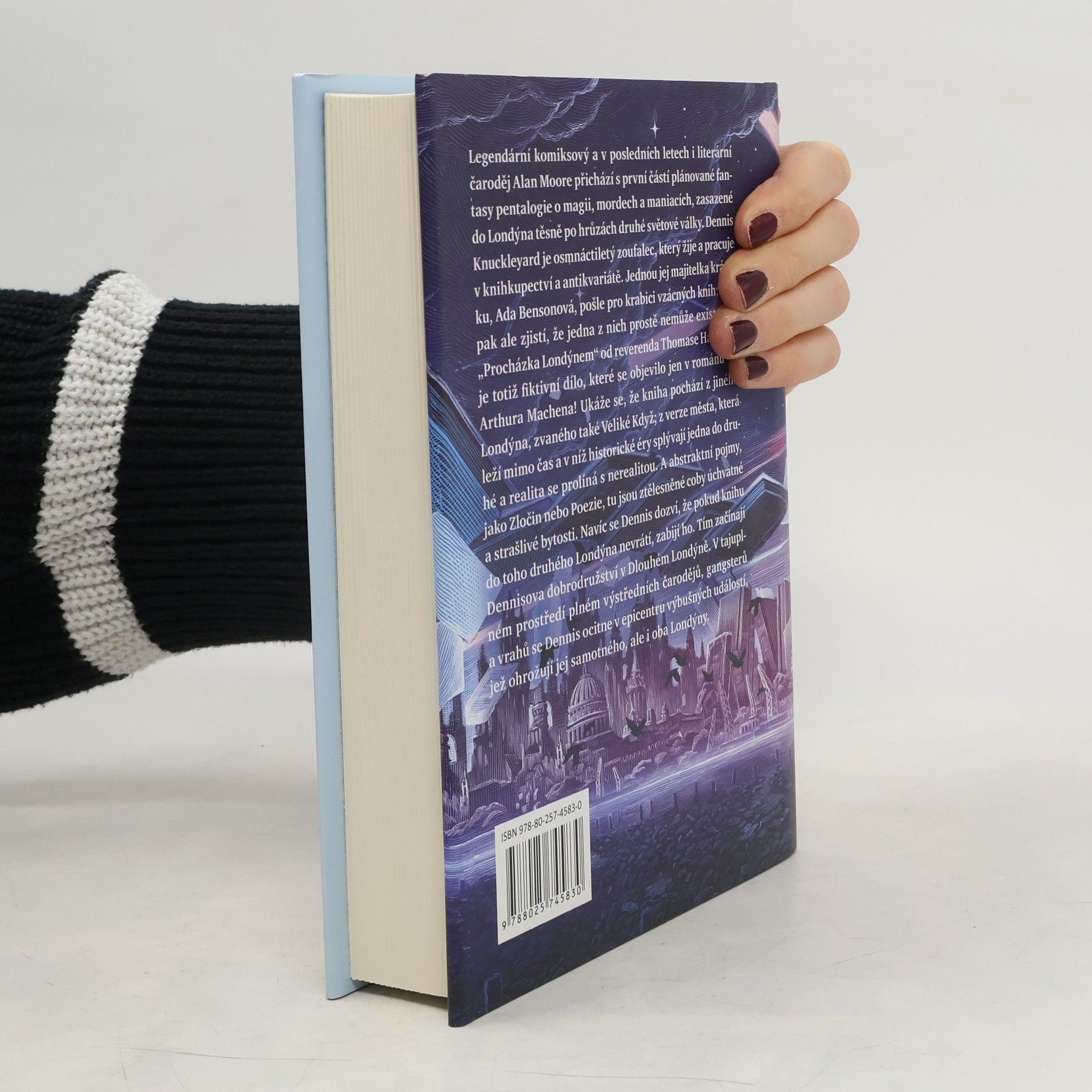 Legendární komiksový a v posledních letech i literární čaroděj Alan Moore přichází s první částí plánované fantasy pentalogie o magii, mordech a maniacích, zasazené do Londýna těsně po hrůzách druhé světové války. Dennis Knuckleyard je osmnáctiletý zoufalec, který žije a pracuje v knihkupectví a antikvariátě. Jednou jej majitelka krámku Ada Bensonová pošle pro krabici vzácných knih; oba pak ale zjistí, že jedna z nich prostě nemůže existovat. „Procházka Londýnem“ od reverenda Thomase Hampola je totiž fiktivní dílo, které se objevilo jen v románu od Arthura Machena! Ukáže se, že kniha pochází z jiného Londýna, zvaného také Veliké Když; z verze města, která leží mimo čas a v níž historické éry splývají jedna do druhé a realita se prolíná s nerealitou. A abstraktní pojmy, jako Zločin nebo Poezie, tu jsou ztělesněné coby úchvatné a strašlivé bytosti. Navíc se Dennis dozví, že pokud knihu do toho druhého Londýna nevrátí, zabijí ho.br> Tím začínají Dennisova dobrodružství v Dlouhém Londýně. V tajuplném prostředí plném výstředních čarodějů, gangsterů a vrahů se Dennis ocitne v epicentru výbušných událostí, jež ohrožují jej samotného, ale i oba Londýny.