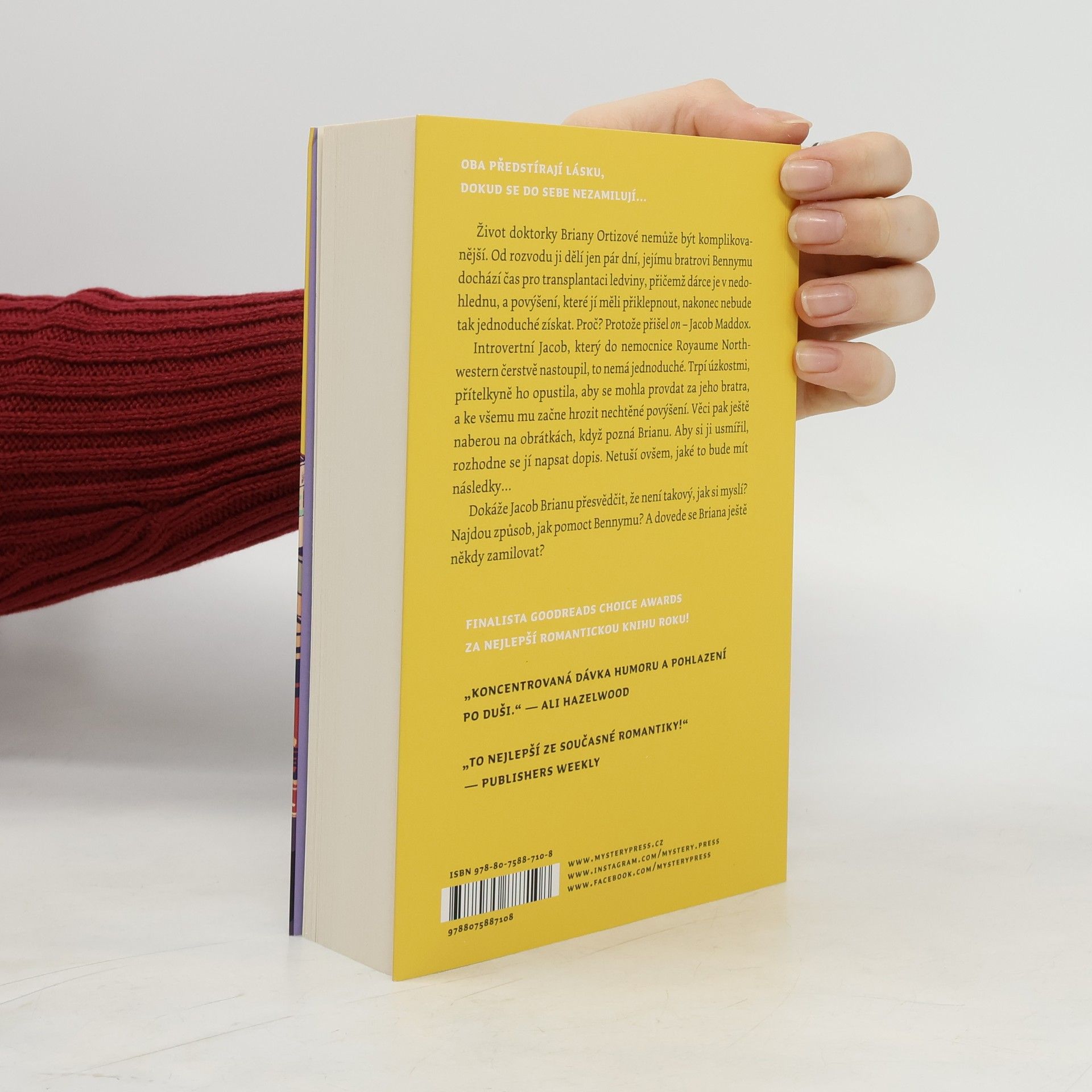 VTIPNÁ A DOJEMNÁ ROMANCE OD AUTORKY BESTSELLERU SOUČÁST TVÉHO SVĚTA... Život doktorky Briany Ortizové nemůže být komplikovanější. Od rozvodu ji dělí jen pár dní, jejímu bratrovi Bennymu dochází čas pro transplantaci ledviny, přičemž dárce je v nedohlednu, a povýšení, které jí měli přiklepnout, nakonec nebude tak jednoduché získat. Proč? Protože přišel on – Jacob Maddox. Introvertní Jacob, který do nemocnice Royaume Northwestern čerstvě nastoupil, to nemá jednoduché. Trpí úzkostmi, přítelkyně ho opustila, aby se mohla provdat za jeho bratra, a ke všemu mu začne hrozit nechtěné povýšení. Věci pak ještě naberou na obrátkách, když pozná Brianu. Aby si ji usmířil, rozhodne se jí napsat dopis. Netuší ovšem, jaké to bude mít následky… Dokáže Jacob Brianu přesvědčit, že není takový, jak si myslí? Najdou způsob, jak pomoct Bennymu? A dovede se Briana ještě někdy zamilovat?