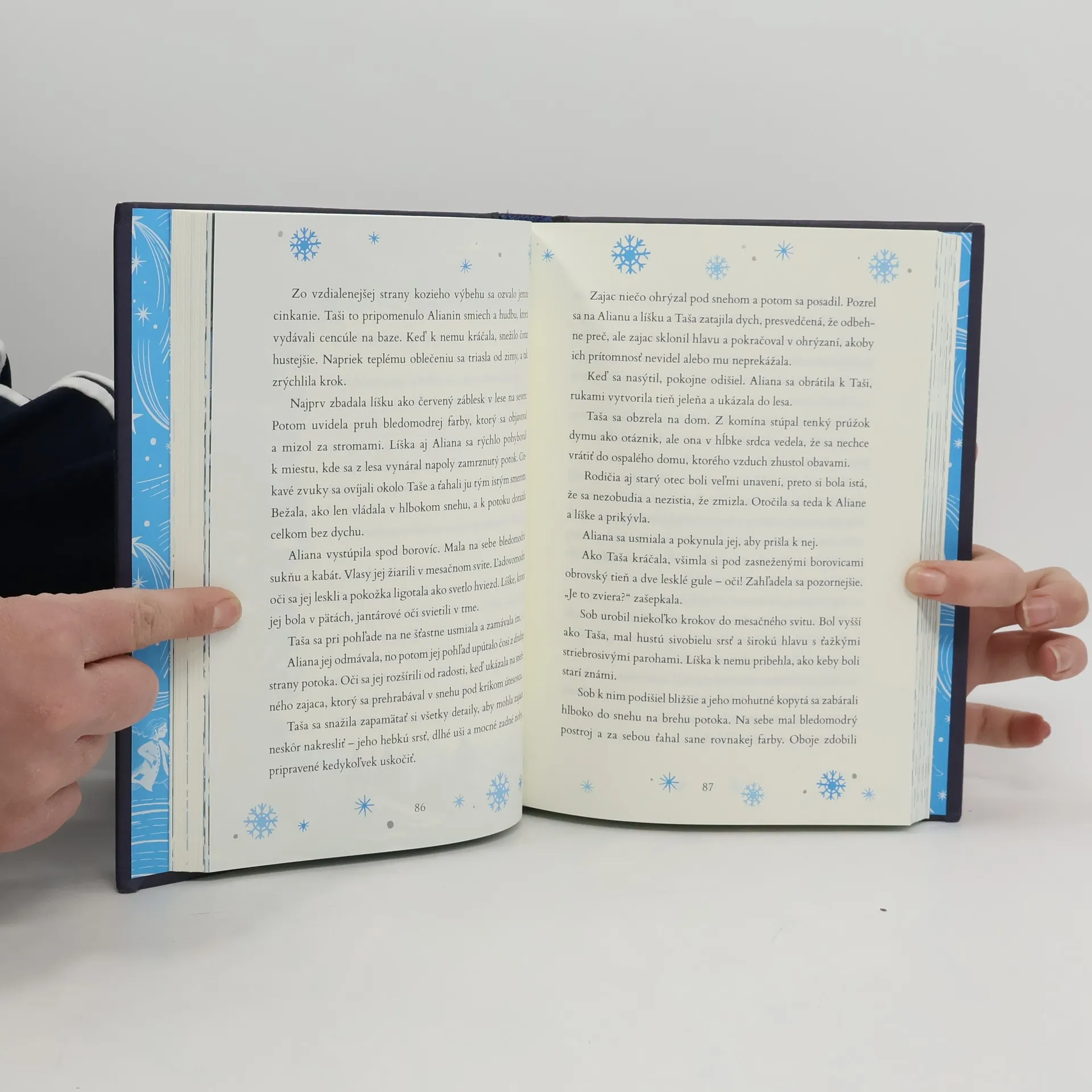 Magický príbeh o snehu a o zimnom kúzle s prvkami fantasy a nádhernými ilustráciami Keď ťa sklamú priatelia a stratíš istoty, kam ich pôjdeš hľadať? Najlepší liek je milujúca rodina, príroda a zvieratá. Kniha vznikla na motívy tradičnej ruskej rozprávky Sneguročka. Autorka napísala čarovný príbeh na pomedzí fantázie a skutočnosti o dievčatku na prahu dospievania. Taša, prenasledovaná spomienkou na nešťastný okamih života a sklamaná zo zrady kamarátov, sa z teplého juhu presťahuje aj s rodičmi k starému otcovi na ďaleký sever. Tam po prvý raz v živote uvidí sneh a postaví si z neho dievča. S ním sa každú noc skutočne-neskutočne vydáva do divokej zimnej prírody, spoznáva zvieratká, ktoré potrebujú v zime ochranu, zažíva nebezpečné situácie v horách a získava opätovnú dôveru v seba aj v priateľstvo. Snehové dievča Aliana s príchodom jari odchádza, no Taša, hoci smutná z ich rozchodu, nadobúda silu nadviazať priateľstvo s tamojšími deťmi a zase sa tešiť zo života. Očarujúci príbeh o hľadaní priateľstva a stratenej sebadôvery na pozadí tradičnej rozprávky.