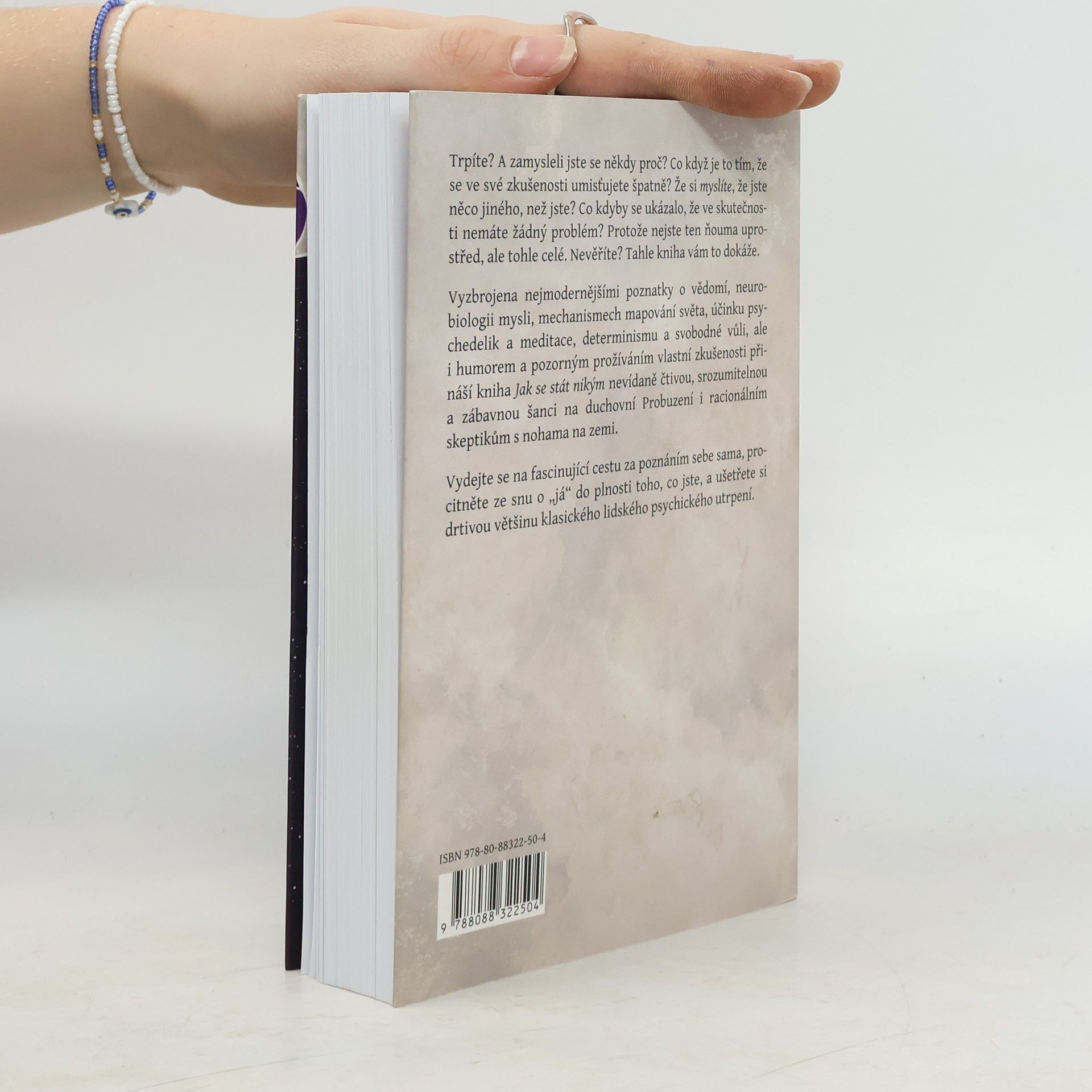 Trpíte? A zamysleli jste se někdy proč? Co když je to tím, že se ve své zkušenosti umisťujete špatně? Že si myslíte, že jste něco jiného, než jste? Co kdyby se ukázalo, že ve skutečnosti nemáte žádný problém? Protože nejste ten ňouma uprostřed, ale tohle celé. Nevěříte? Tahle kniha vám to dokáže. Vyzbrojena nejmodernějšímipoznatky o vědomí, neurobiologii mysli, mechanismech mapování světa, účinku psychedelik a meditace, determinismu a svobodné vůli, ale i humorem a pozorným prožíváním vlastní zkušenosti přináší kniha Jak se stát nikým nevídaně čtivou, srozumitelnou a zábavnou šanci na duchovní Probuzení i racionálním skeptikům s nohama na zemi. Vydejte se na fascinující cestu za poznáním sebe sama, procitněte ze snu o „já“ do plnosti toho, co jste, a ušetřete si drtivou většinu klasického lidského psychického utrpení.