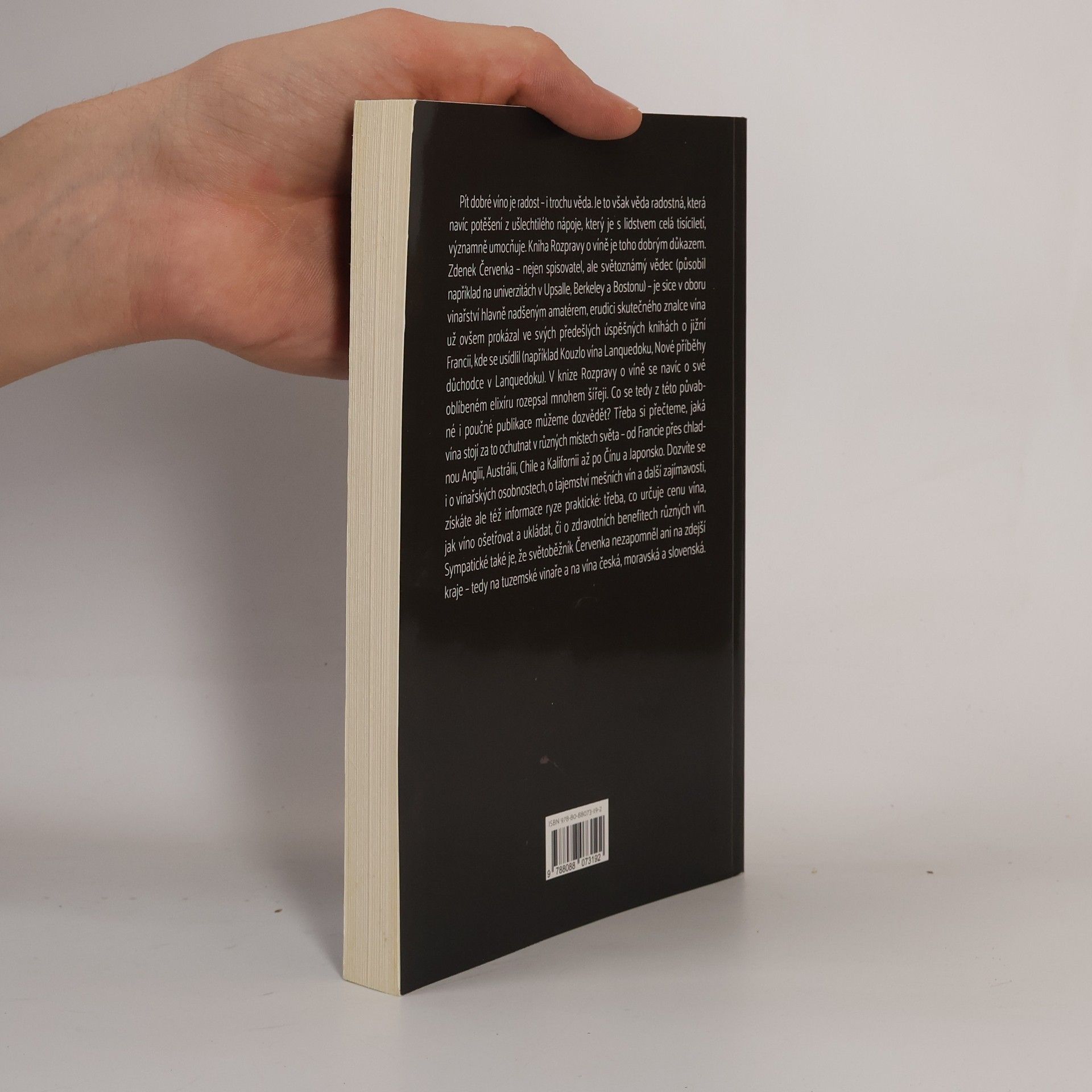 Pít dobré víno je radost – i trochu věda. Je to však věda radostná, která navíc potěšení z ušlechtilého nápoje, který je s lidstvem celá tisíciletí, významně umocňuje. Kniha Rozpravy o víně je toho vynikajícím důkazem. Zdenek Červenka - nejen spisovatel, ale světoznámý vědec (působil například na univerzitách v Upsalle, Berkeley a Bostonu) - je sice v oboru vinařství hlavně nadšeným amatérem, erudici skutečného znalce vína už ovšem prokázal ve svých předešlých úspěšných knihách o Jižní Francii, kde se usídlil. (například Kouzlo vína Lanquedocu, Nové příběhy důchodce v Lanquedocu.) V publikaci Rozpravy o víně se navíc o své oblíbeném elixíru rozepsal mnohem šířeji a velice čtivou formou. Co se tedy z této půvabné i poučné publikace můžeme dozvědět? Třeba si přečteme, jaká vína stojí za to ochutnat v různých místech světa – od Francie přes chladnou Anglii, Austrálii, Chile a Kalifornii až po Čínu a Japonsko. Dozvíte se i o vinařských osobnostech, o tajemství mešních vín a další zajímavosti, získáte ale také informace ryze praktické: třeba co určuje cenu vína, jak víno ošetřovat a ukládat či o zdravotních benefitech různých vín. Sympatické také je , že světoběžník Červenka nezapomněl ani na kraje naše – tedy na tuzemské vinaře a na vína česká, moravská i slovenská.