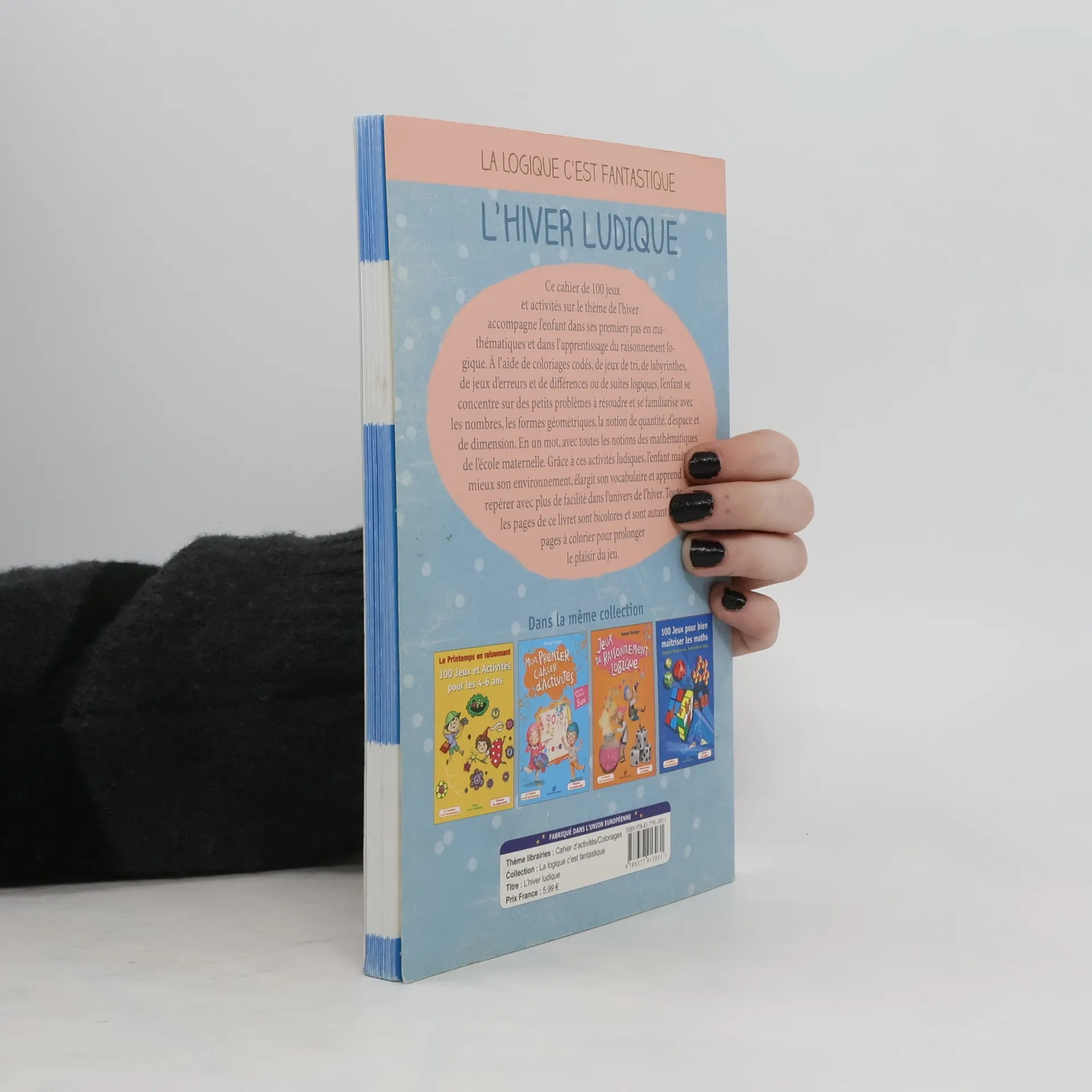 Ce cahier de 100 jeux et activités sur le thème de l'hiver accompagne l'enfant dans ses premiers pas en mathématiques et dans l'apprentissage du raisonnement logique. A l'aide de coloriages codés, de jeux de tri, de labyrinthes, de jeux d'erreurs et de différences ou de suites logiques, l'enfant se concentre sur des petits problèmes à résoudre et se familiarise avec les nombres, les formes géométriques, la notion de quantité, d'espace et de dimension. En un mot, avec toutes les notions des mathématiques de l'école maternelle. Grâce à ces activités ludiques, l'enfant maîtrise mieux son environnement, élargit son vocabulaire et apprend à se repérer avec plus de facilité dans l'univers de l'hiver. Toutes les pages de ce livret sont.bicolores et sont autant de pages à colorier pour prolonger le plaisir du jeu.