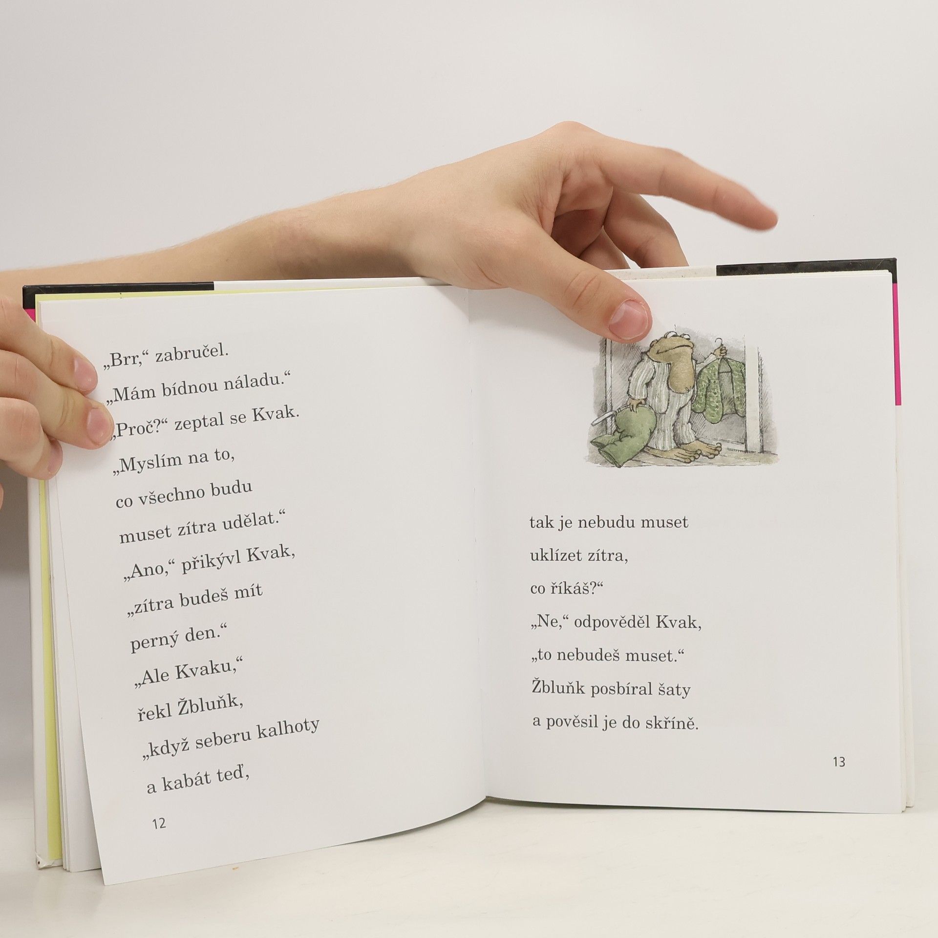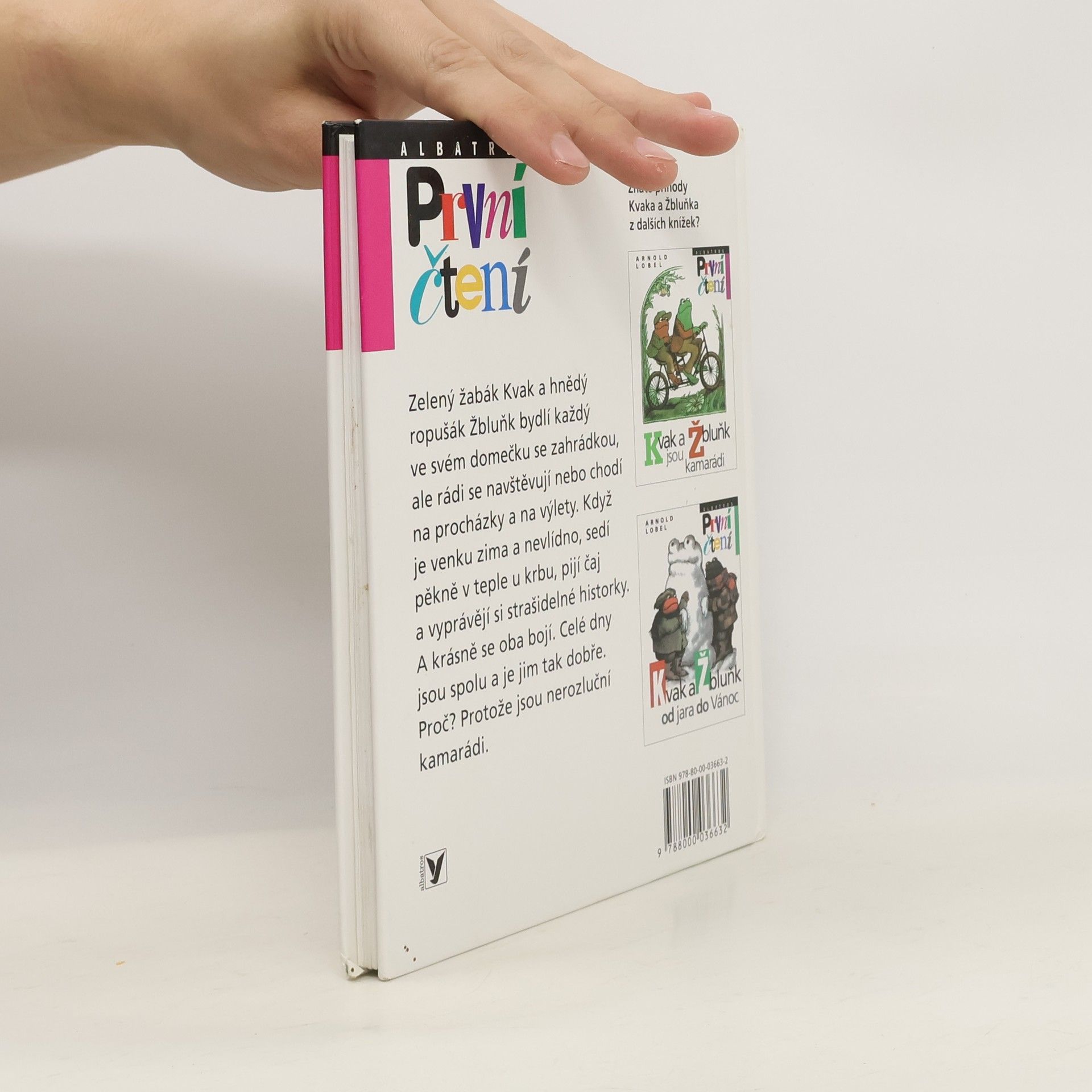 Zelený žabák Kvak a hnědý ropušák Žbluňk bydlí každý ve svém domečku se zahrádkou, ale rádi se navštěvují nebo chodí na procházky a na výlety. Když je venku zima a nevlídno, sedí pěkně v teple u krbu, pijí čaj a vyprávějí si strašidelné historky. A krásně se oba bojí. Celé dny jsou spolu a je jim tak moc dobře. Proč? Protože jsou nerozluční kamarádi. Ten, kdo už je zná z knížek Kvak a Žbluňk jsou kamarádi či Kvak a Žbluňk od jara do Vánoc, je jistě rád znovu potká, a ten, kdo o nich ještě neslyšel, má právě teď příležitost se s nimi seznámit. A protože má knížka velká písmena, snadno ji přelouská každý začínající čtenář. S Kvakem a Žbluňkem se písmenek nikdo bát nemusí!