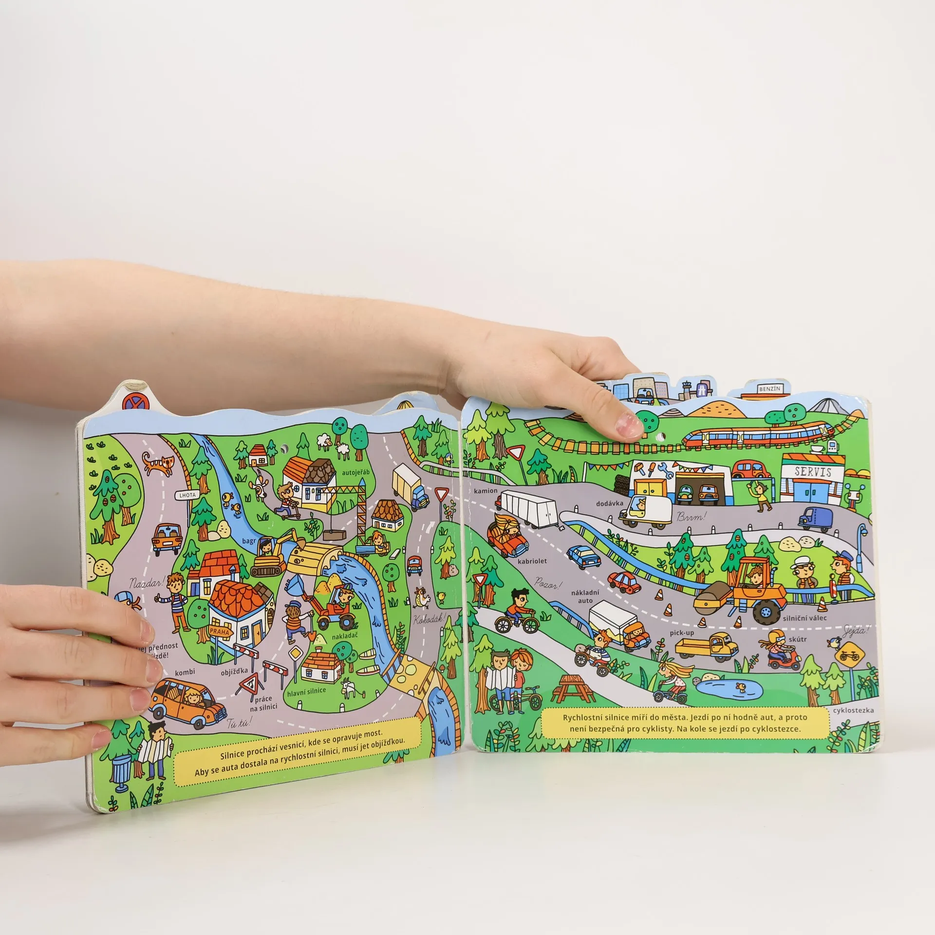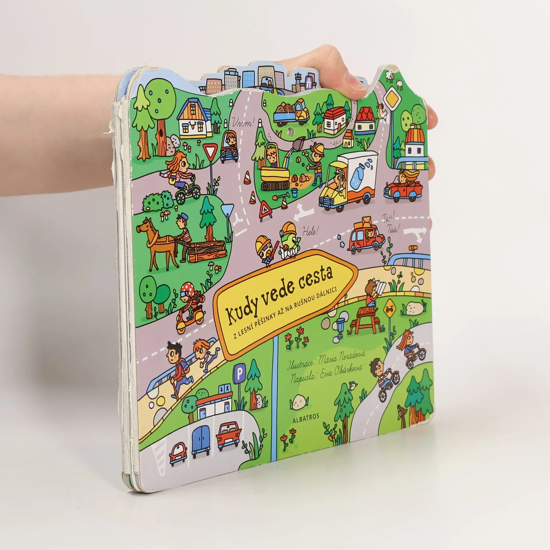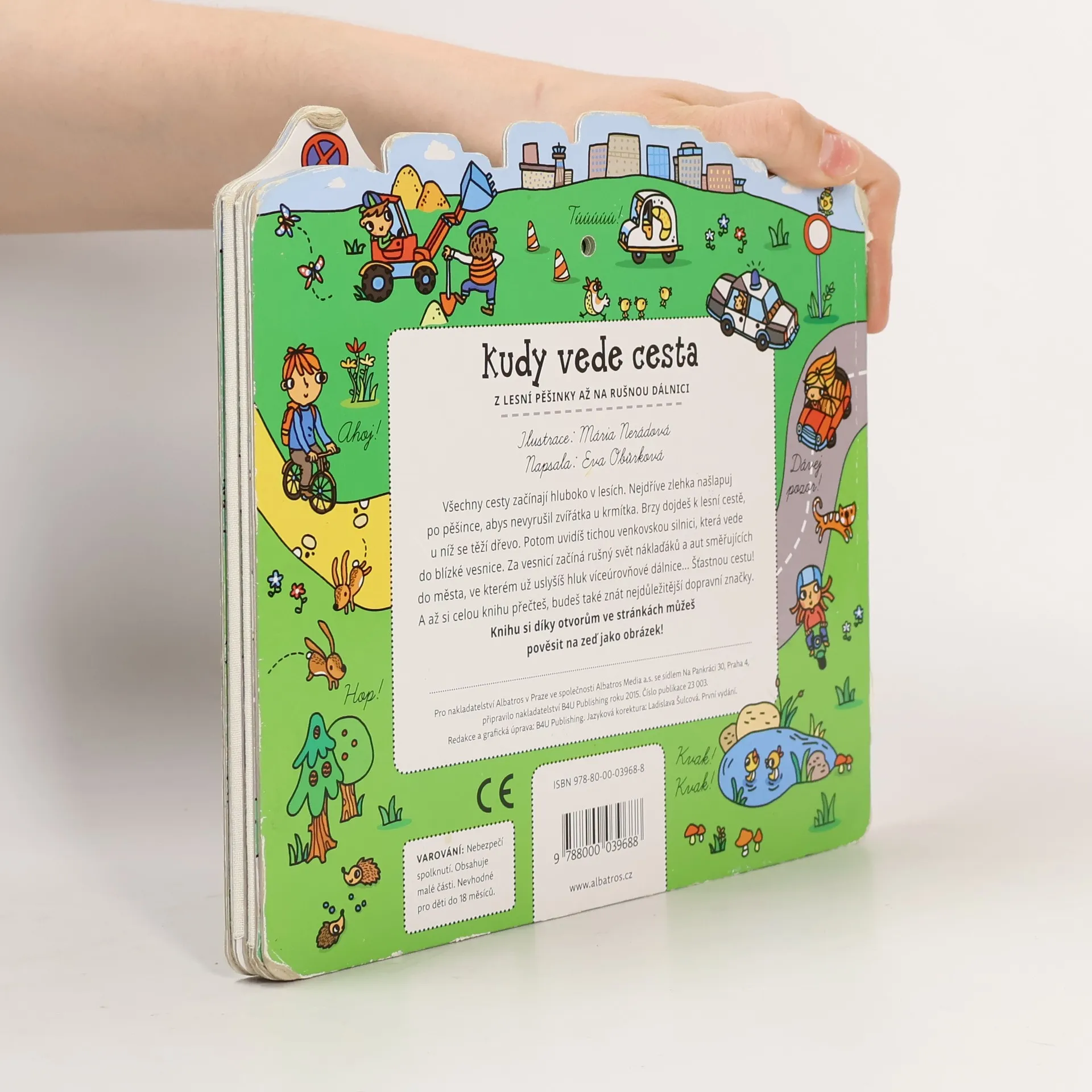 Všechny cesty začínají hluboko v lesích. Nejdří- ve zlehka našlapuj po pěšince, abys nevyrušil zvířátka u krmítka. Brzy dojdeš k lesní cestě, u níž se těží dřevo. Potom uvidíš tichou venkovskou silnici, která vede do blízké vesnice. Za vesnicí začíná rušný svět náklaďáků a aut směřujících do města, ve kterém už uslyšíš hluk víceúrovňové dálnice... Šťastnou cestu! A až si celou knihu přečteš, budeš také znát nejdůležitější dopravní značky. Knihu si díky otvorům ve stránkách můžeš pověsit na zeď jako obrázek!