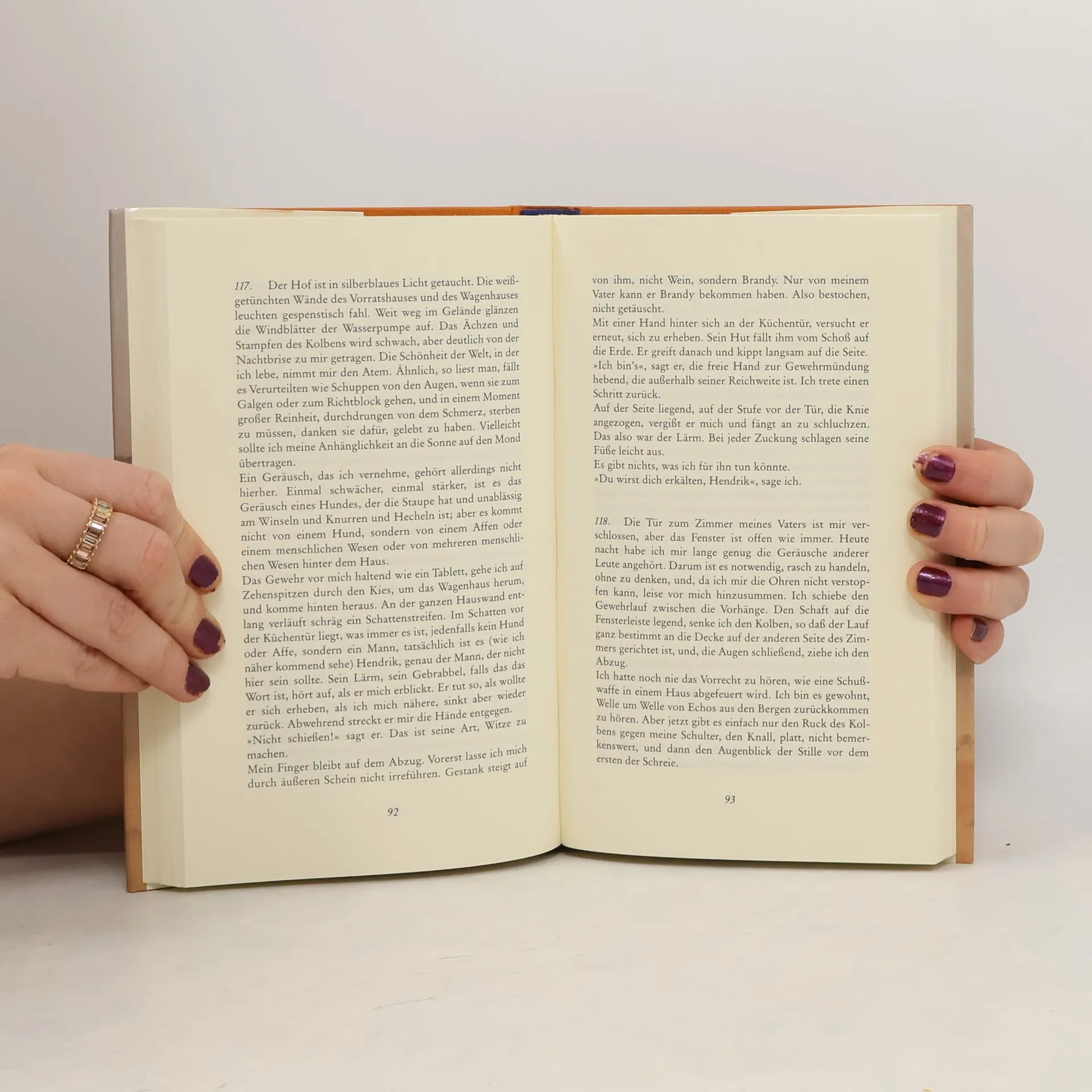 Erstickend im Stumpfsinn des kolonialen Südafrika zur Zeit der Apartheid, gefangen mit seinen schwarzen Leibeigenen in einem Netz gegenseitiger Unterdrückungen, Bespitzelung und Verdächtigung, sucht ein verwitweter, weißer Schafzüchter private Erlösung in den Armen einer Geliebten. Sie ist schwarz, und sie ist die blutjunge Frau seines Vorarbeiters. Diese Verletzung der Rassenschranken markiert das Ende des unsicheren feudalen Friedens. Seine verbitterte, ledig gebliebene Tochter sinnt auf blutige Rache und führt sie auch aus. Oder spielt sie alles nur in Gedanken durch? Ist diese schmerzhafte Geschichte nur die Ausgeburt einer rachsüchtigen Phantasie? Die Deutung dieser 266 tagebuchartigen Aufschreibungen bleibt dem Leser überlassen.