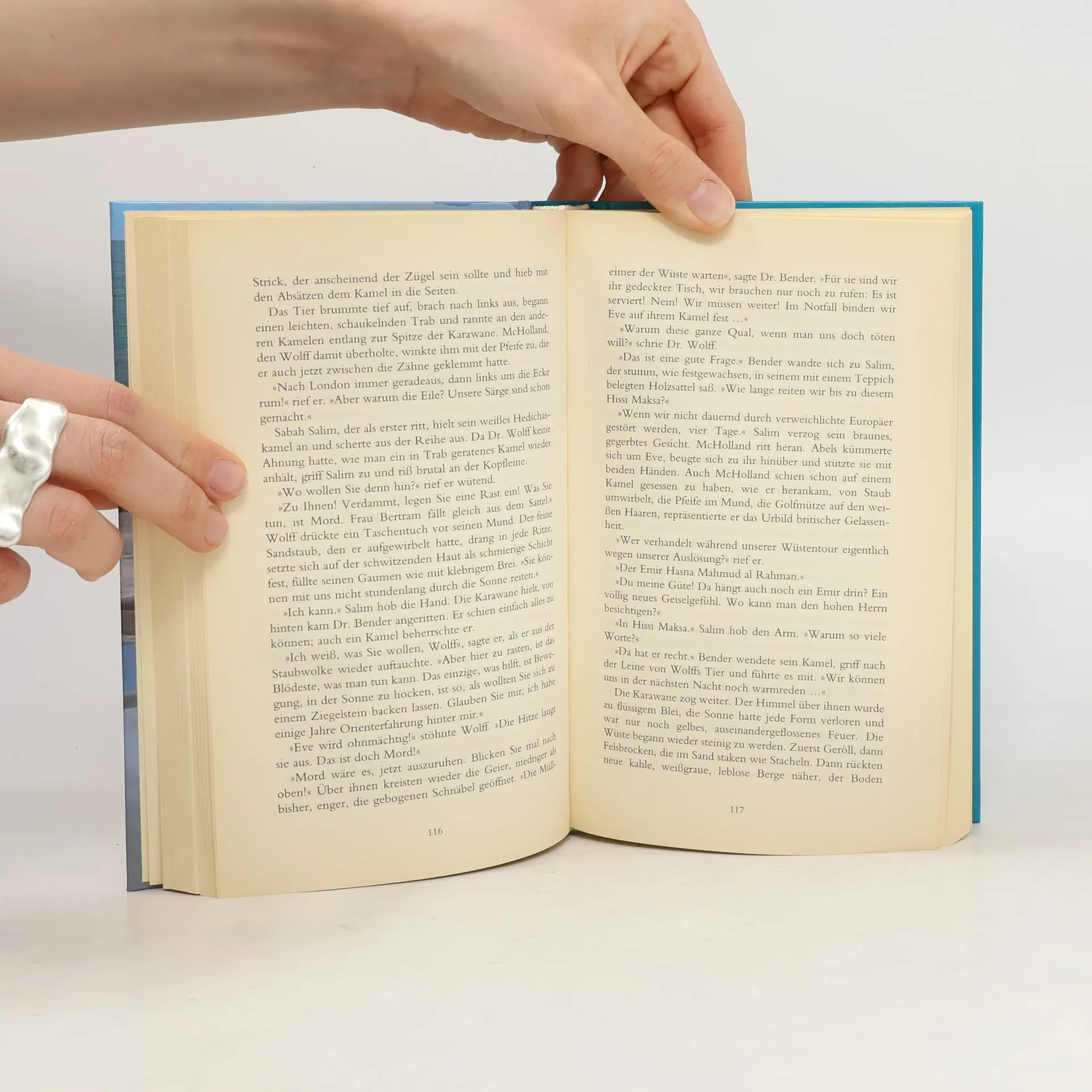 Vor der arabischen Halbinsel wird das Luxusschiff »Fidelitas« mit vierhundert reichen Touristen an Bord von vier eleganten, aber mit Maschinenpistolen und Bomben bewaffneten Männern, eben noch Passagiere wie die anderen, aufgebracht. Während die »Haie« ihre Forderungen stellen, steuert aus einer einsamen Bucht ein Boot das Schiff zu. Zehn vermummte Gestalten klettern an Bord der »Fidelitas«. Fünf Geiseln warden in die Wüste verschleppt, warden Tagen höllischer Glut und Nächten eisiger Kälte, warden Strapazen Schmerzen und Durst ausgesetzt. Gibt es noch Hoffnung für sie? Und was sind der Welt fünf Menschen wert?