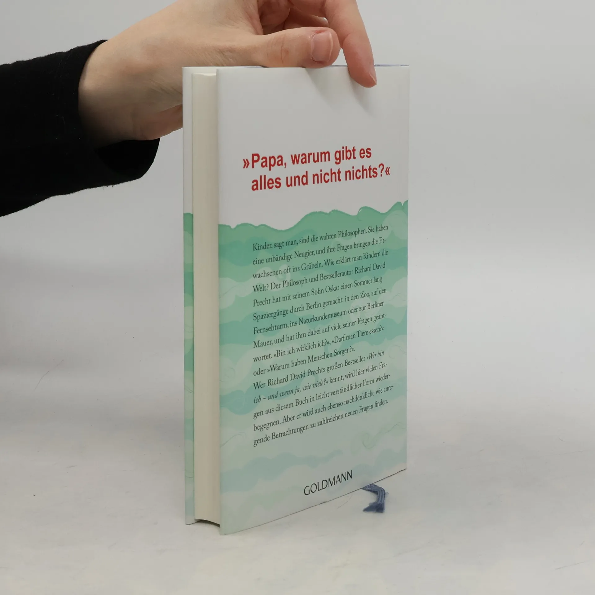 Richard David Precht erklärt seinem Sohn Oskar die Welt Kinder, sagt man, sind die wahren Philosophen. Sie haben eine unbändige Neugier, und ihre Fragen bringen die Erwachsenen oft ins Grübeln. Wie erklärt man Kindern die Welt? Der Philosoph und Bestsellerautor Richard David Precht hat mit seinem Sohn Oskar einen Sommer lang Spaziergänge durch Berlin gemacht: in den Zoo, auf den Fernsehturm, ins Naturkundemuseum oder zur Synagoge, und hat ihm dabei auf viele seiner Fragen geantwortet. „Bin ich wirklich ich?“, „Darf man Tiere essen?“ oder „Warum haben Menschen Sorgen?“. Auf spielerische Art und Weise und mit vielen Geschichten zeigt Precht den Kindern unsere Welt und hilft ihnen, sie besser zu verstehen. Nach „Wer bin ich und wenn ja, wie viele?“ nun das Buch zur Philosophie für alle jungen Menschen, die es genauer wissen wollen!