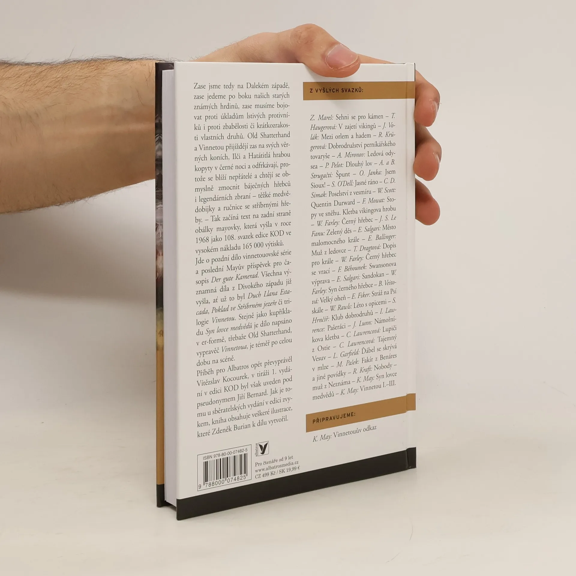 Sběratelské vydání slavného Mayova díla s ilustracemi Zdeňka Buriana! V edici KOD vychází v reedici napínavý krátký román, v němž hlavní roli hrají Vinnetou a Old Shatterhand. Stejně jako kupříkladu Syn lovce medvědů je dílo napsáno v er-formě, třebaže Old Shatterhand, vypravěč Vinnetoua, je téměř po celou dobu na scéně. Příběh pro Albatros skvělým způsobem převyprávěl Vítězslav Kocourek, Jak je tomu u sběratelských vydání v edici zvykem, kniha obsahuje veškeré ilustrace, které Zdeněk Burian k tomuto dílu vytvořil.