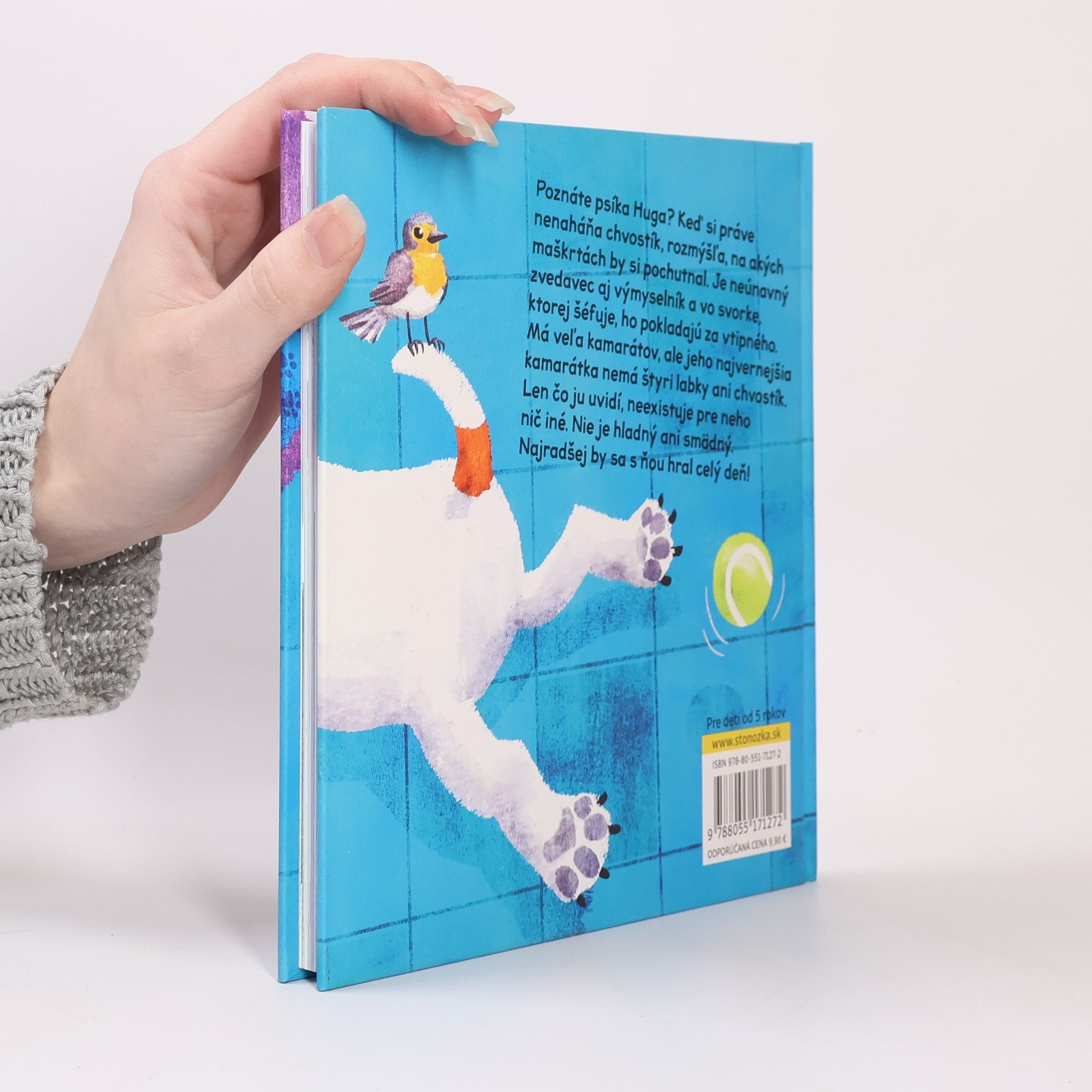 Poznáte psíka Huga? Býva so svojím pánom Šimonom na sídlisku a je s ním veselo.Keď si práve nenaháňa chvostík, rozmýšľa, na akých maškrtách by si pochutnal. Vo svojom psom živote už všeličo vyparatil, lebo je neúnavný zvedavec a výmyselník, no nakoniec vždy urobil správnu vec. Hugo rád vymýšľa pre ostatné psíky na dvore rôzne hry a vo svorke, ktorej šéfuje, ho pokladajú za vtipného. Snaží sa byť ku každému milý, ale keď treba, vždy nájde spôsob, ako si poradiť s jazvečíkom Dodom, ktorý sa nevie zmestiť do svojho kožúška. Hugo má veľa kamarátov. Jeho najvernejšia kamarátka však nemá štyri labky ani chvostík. Len čo ju uvidí, neexistuje pre neho nič iné. Nie je hladný ani smädný. Najradšej by sa s ňou hral celý deň!Pre deti od 5 rokovIlustroval Viliam Slaminka