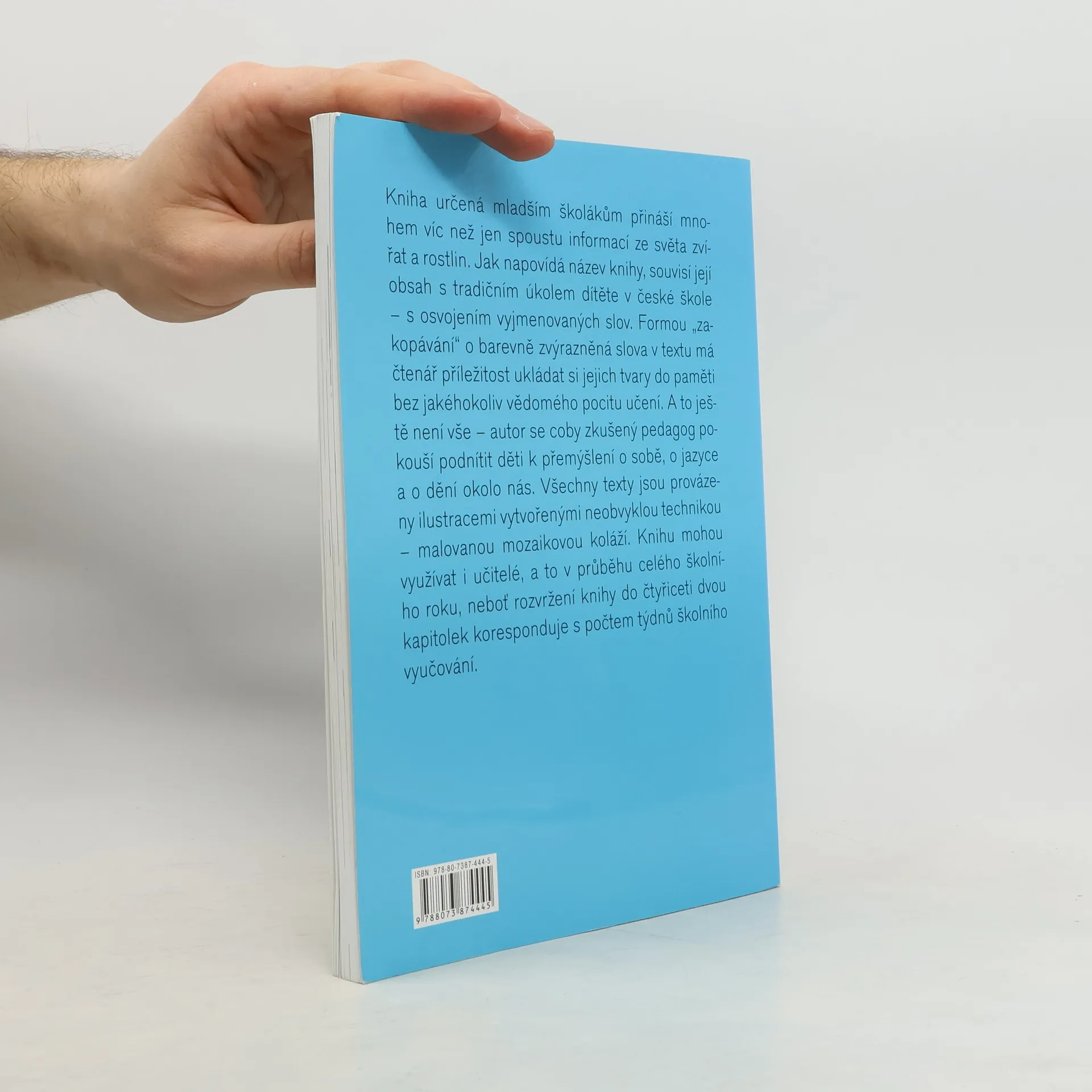 Kniha určená mladším školákům přináší mnohem víc než jen spoustu informací ze světa zvířat a rostlin. Jak napovídá název knihy, souvisí její obsah s tradičním úkolem dítěte v české škole – s osvojením vyjmenovaných slov. Formou „zakopávání“ o barevně zvýrazněná slova v textu má čtenář příležitost ukládat si jejich tvary do paměti bez jakéhokoliv vědomého pocitu učení. A to ještě není vše – autor se coby zkušený pedagog pokouší podnítit děti k přemýšlení o sobě, o jazyce a o dění okolo nás. Všechny texty jsou provázeny ilustracemi vytvořenými neobvyklou technikou – malovanou mozaikovou koláží. Knihu mohou využívat i učitelé, a to v průběhu celého školního roku, neboť rozvržení knihy do čtyřiceti dvou kapitolek koresponduje s počtem týdnů školního vyučování.